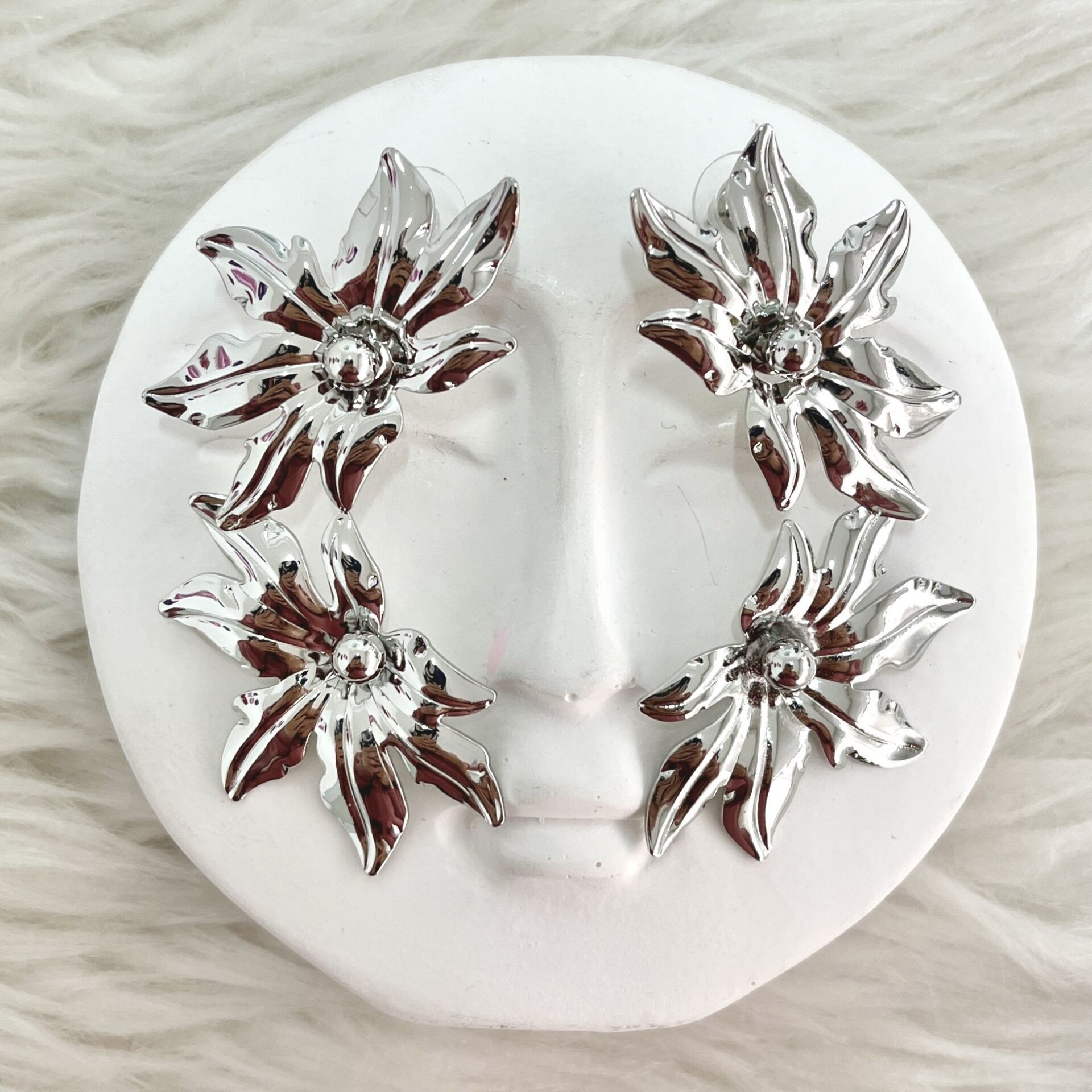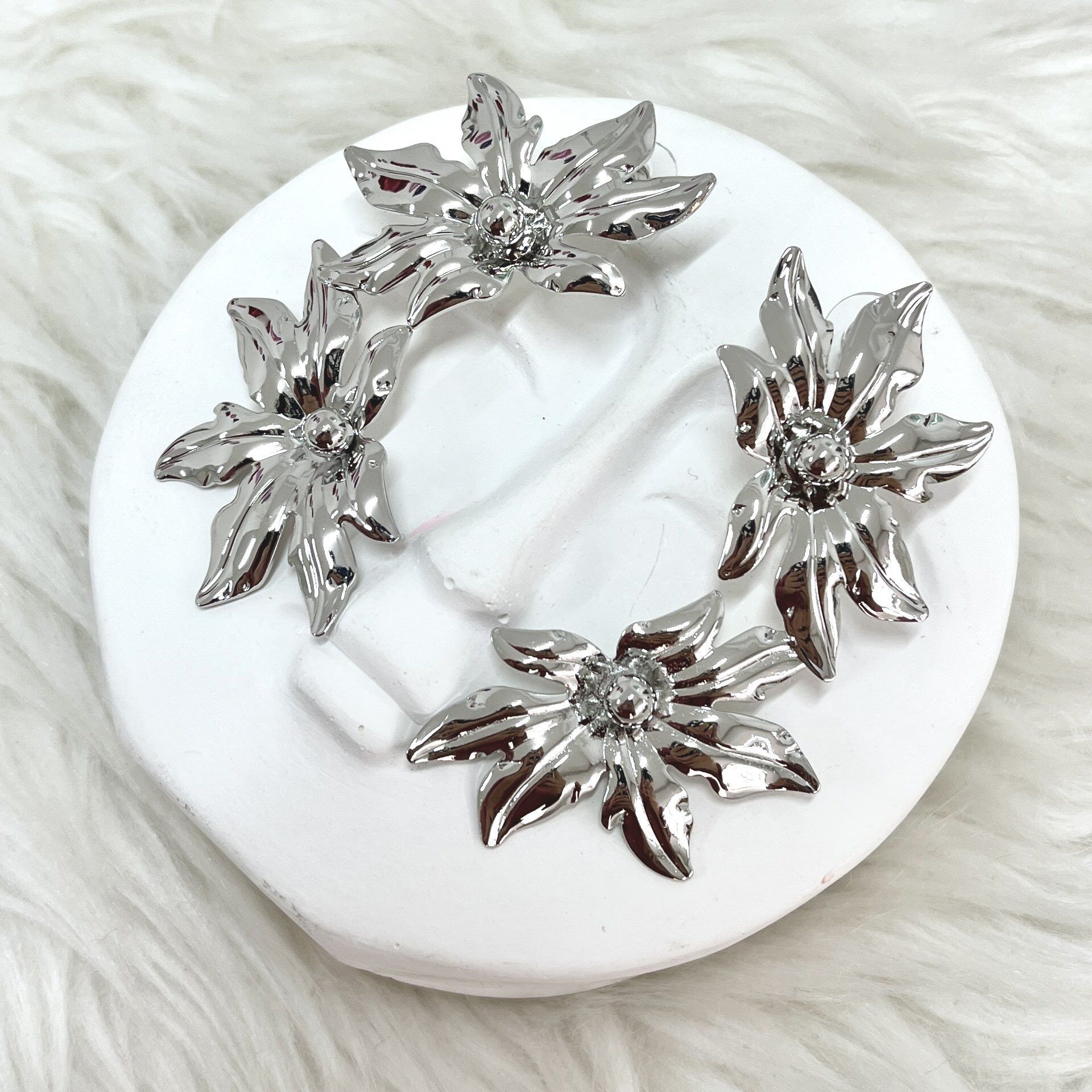 Kararmaya dayanıklı özel seri rodyum kaplama küpe.