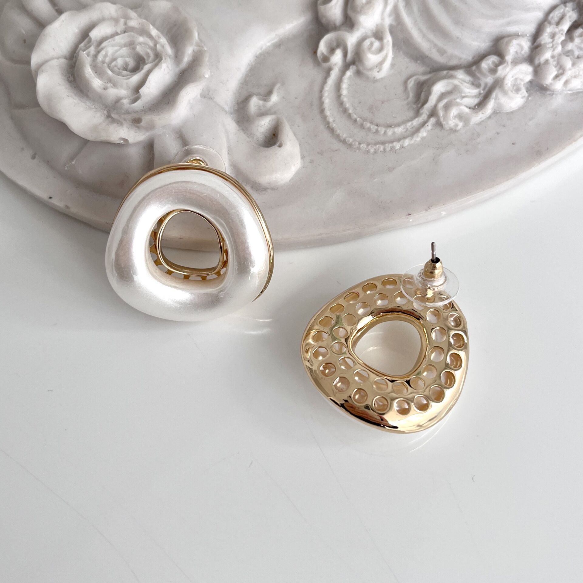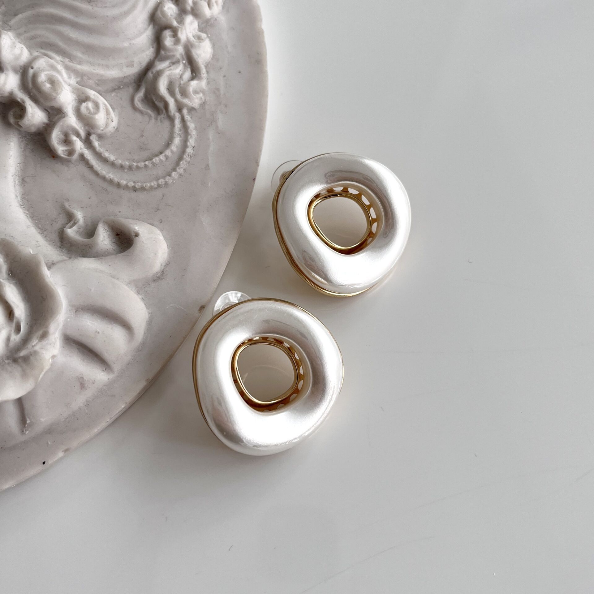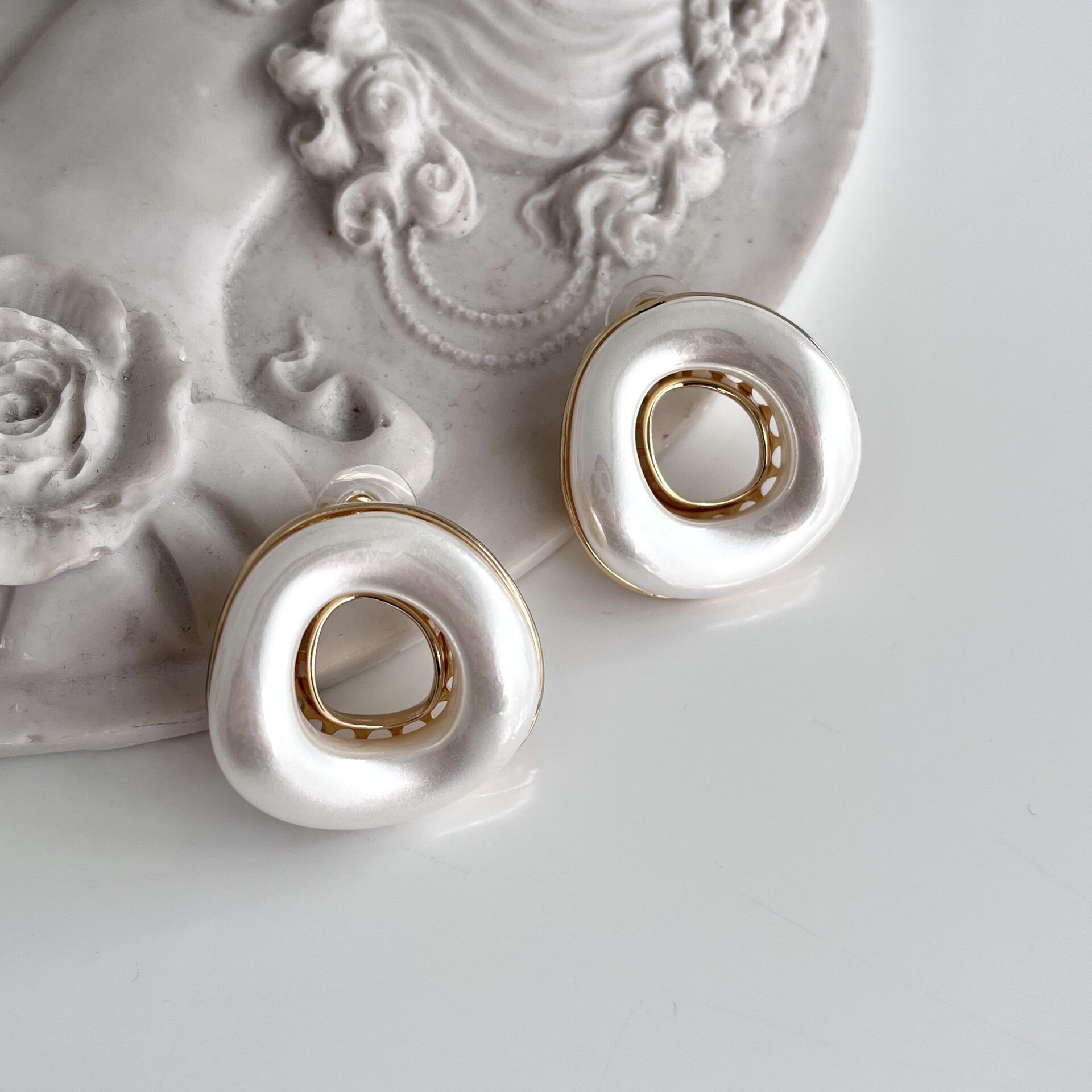 İthal Yuvarlak Beyaz Küpe