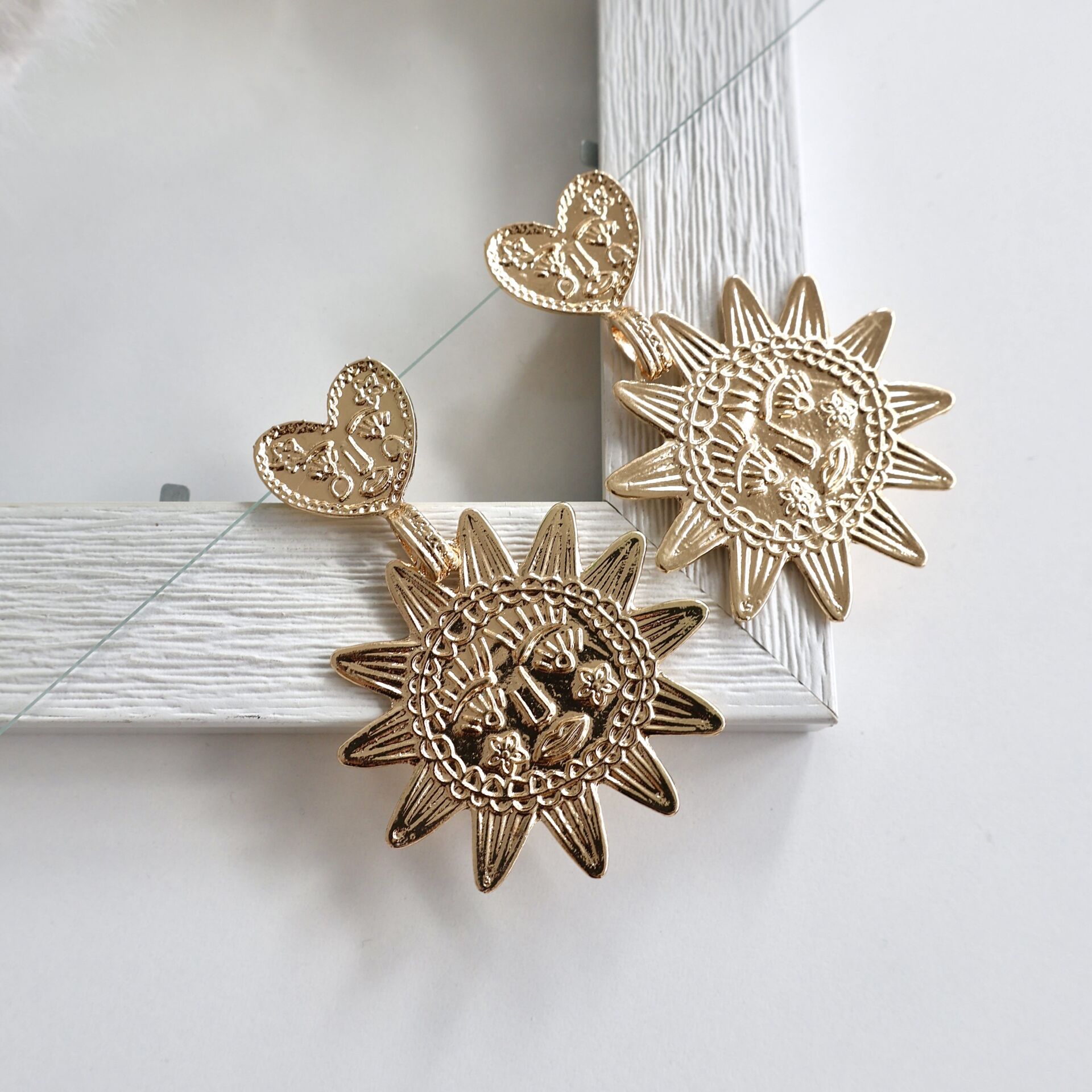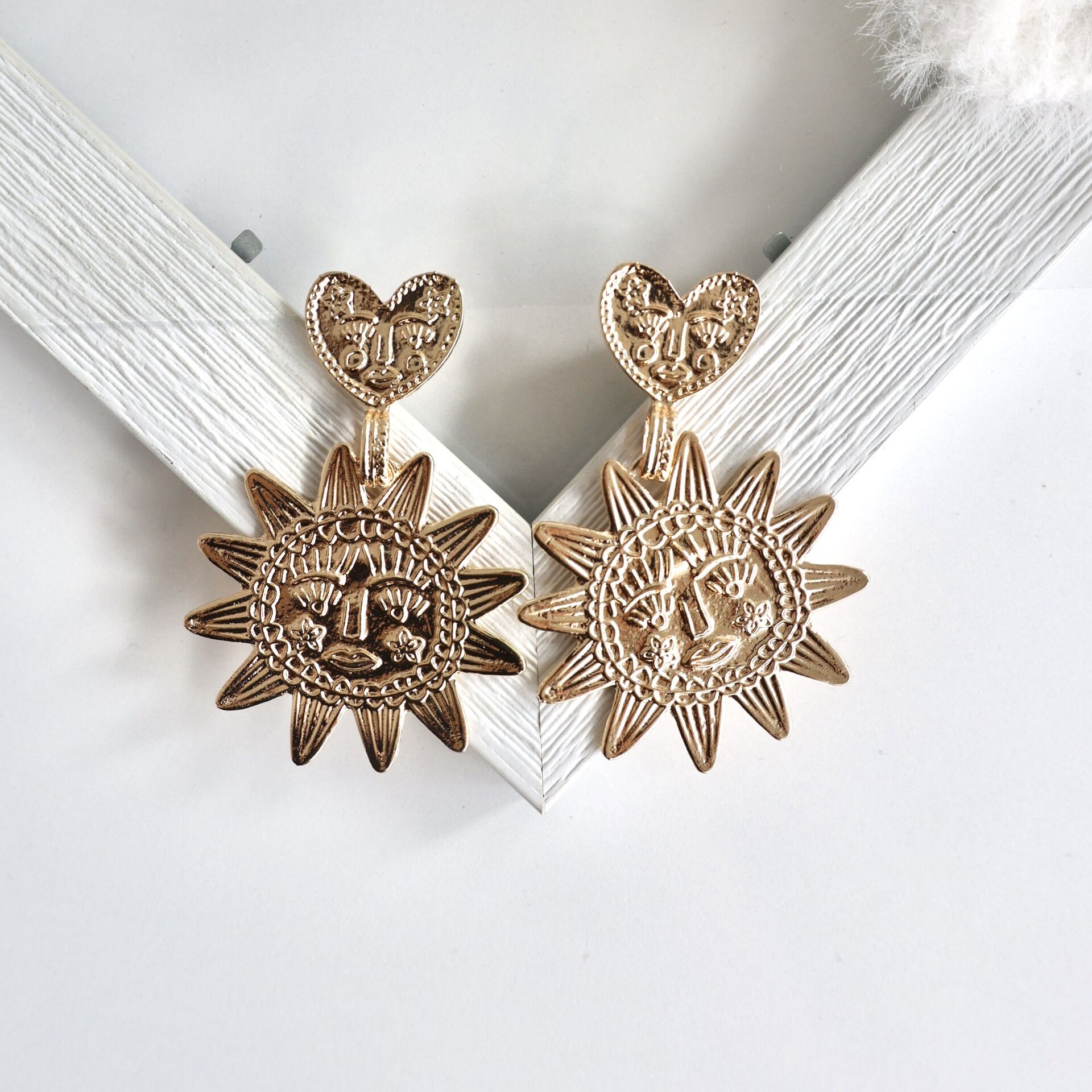 Kabartmalı Kalp & Güneş Küpe