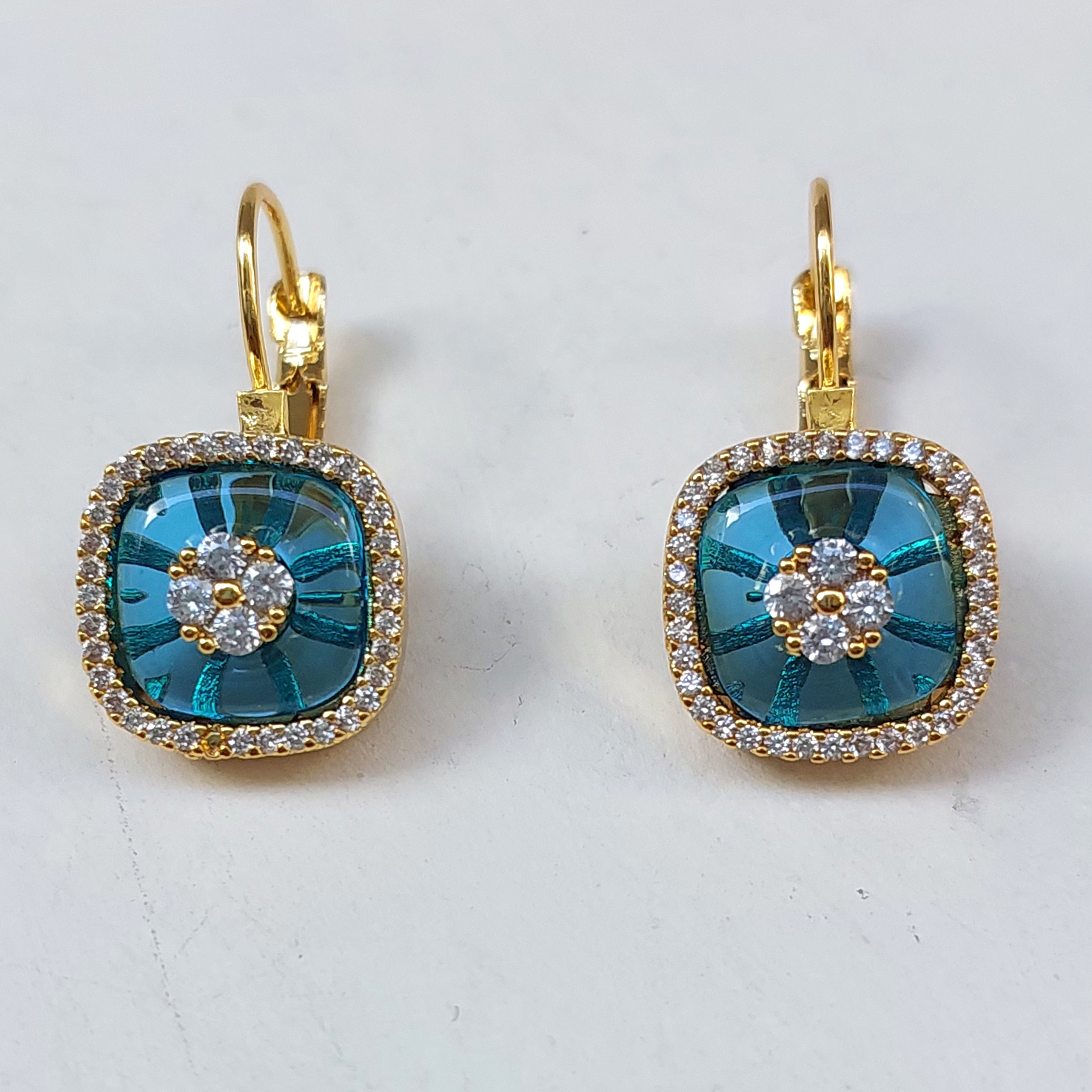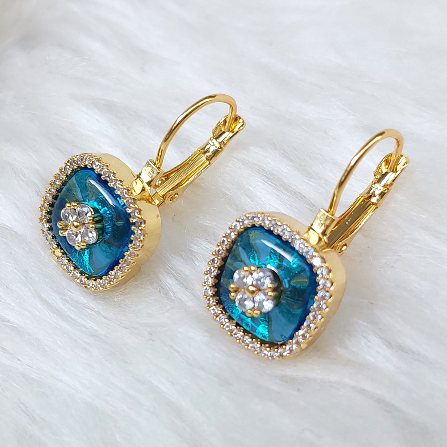 Mavi & Gold Kare Küpe