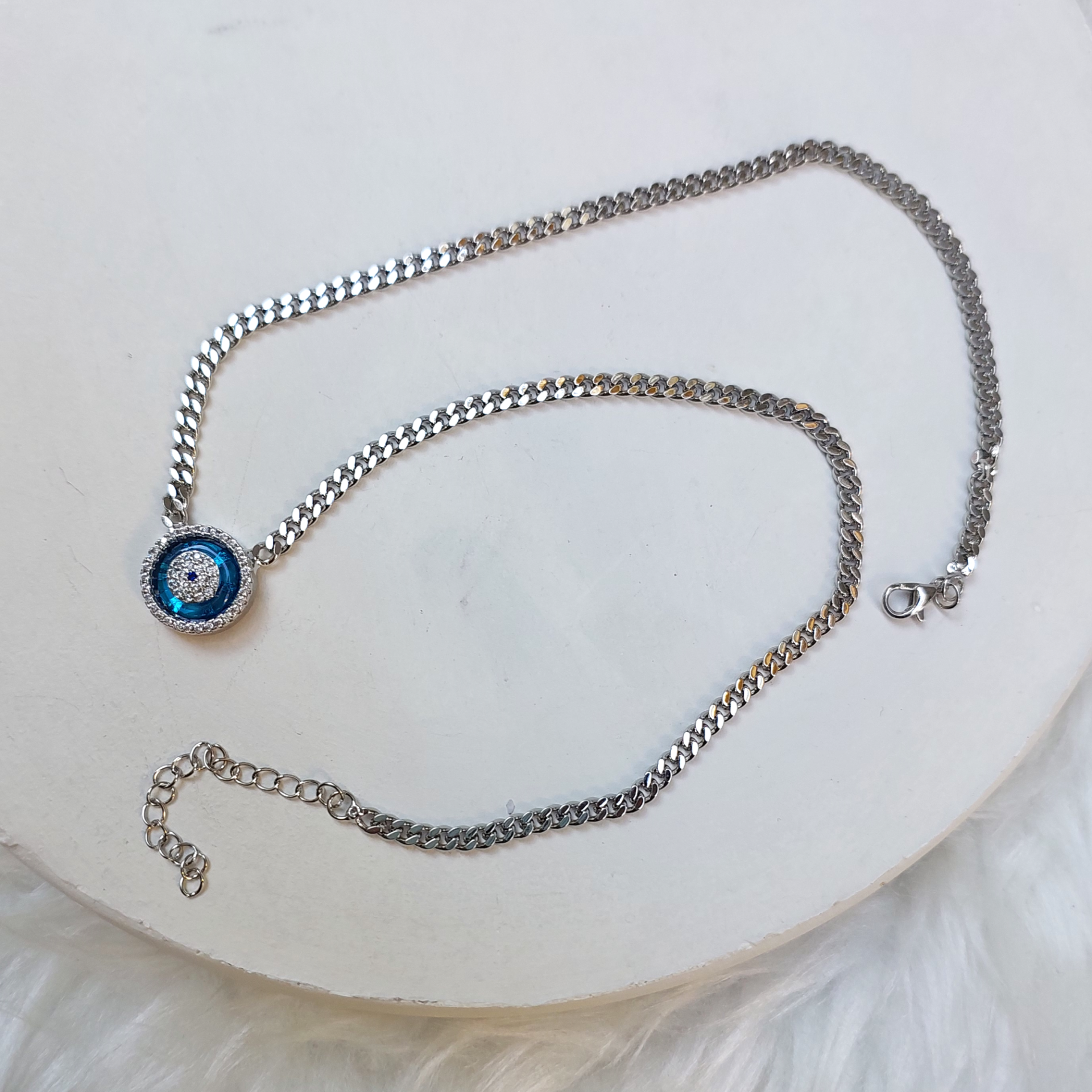 Mavi Taşlı Zincir Kolye