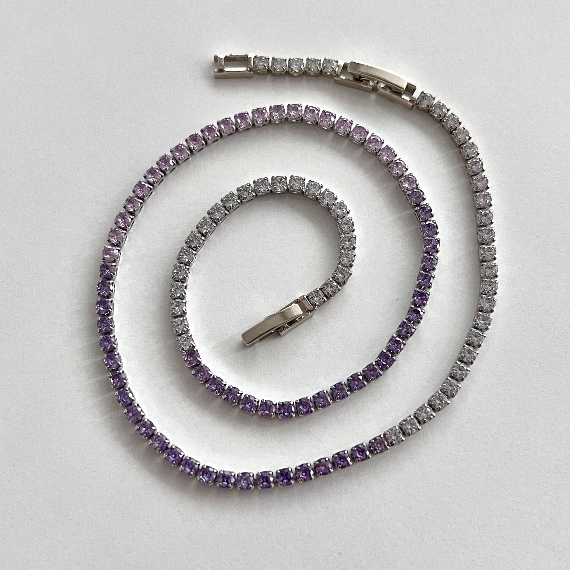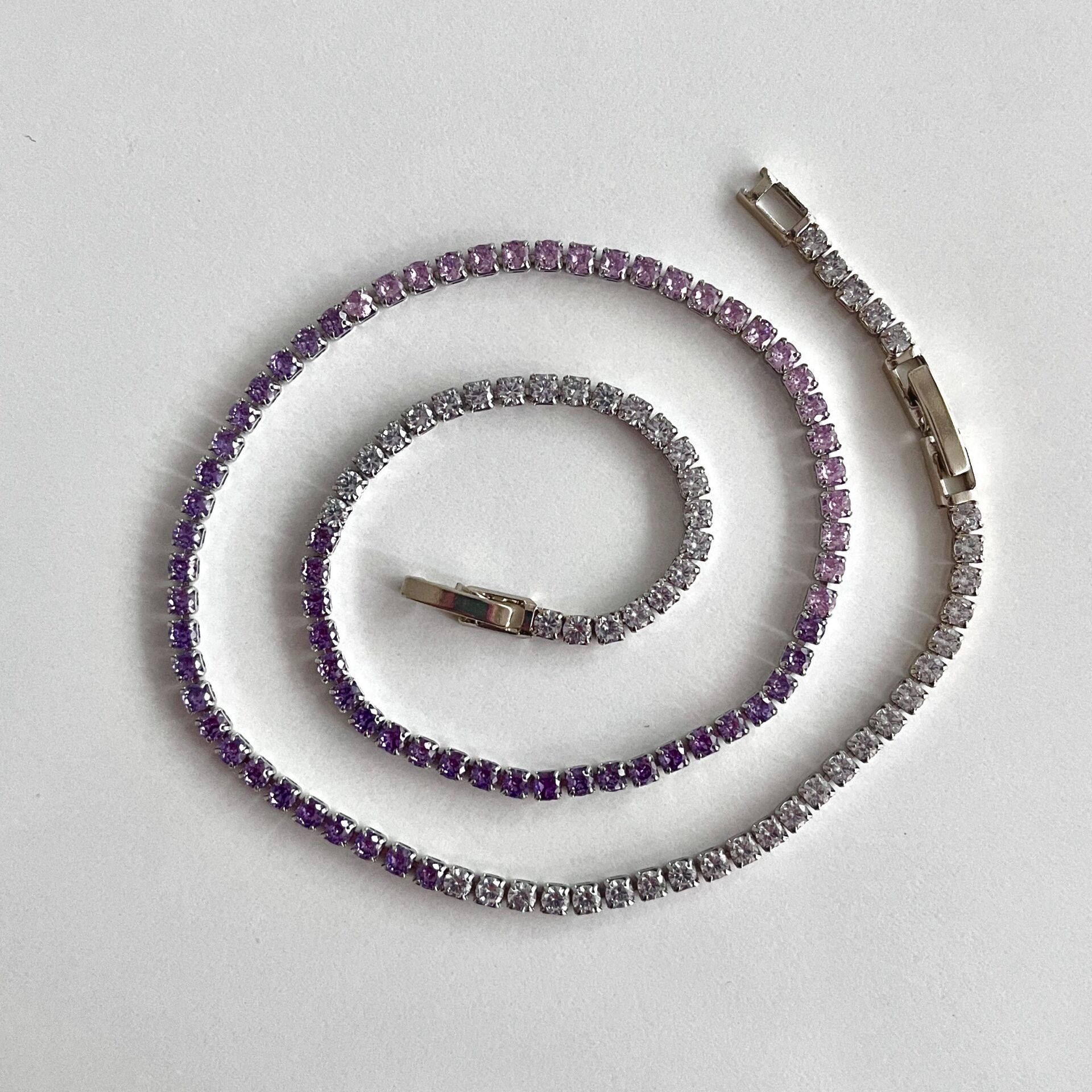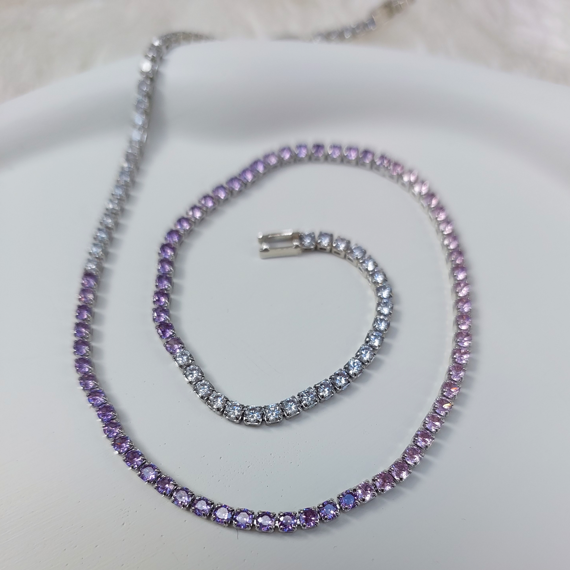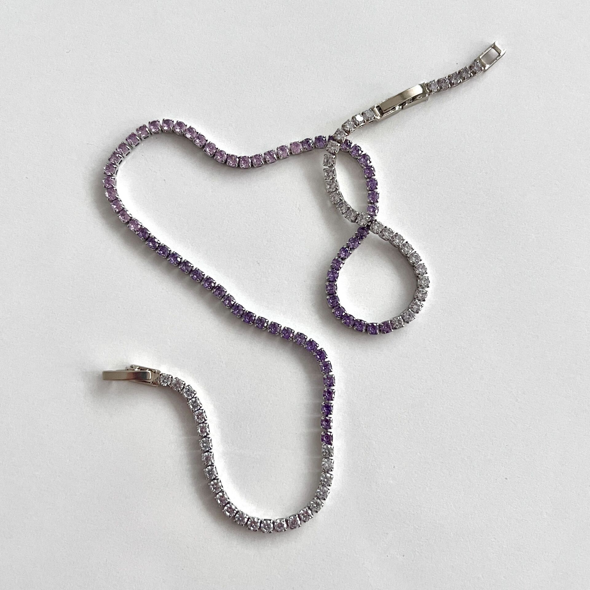 Mor, pembe ve beyaz zirkon kullanılmıştır.