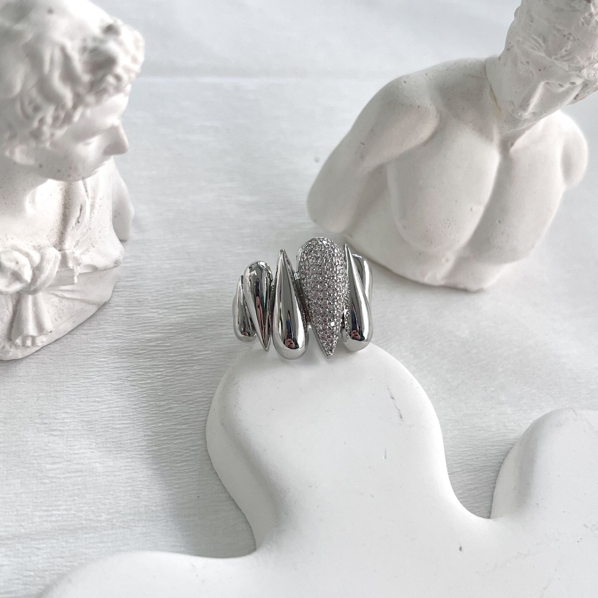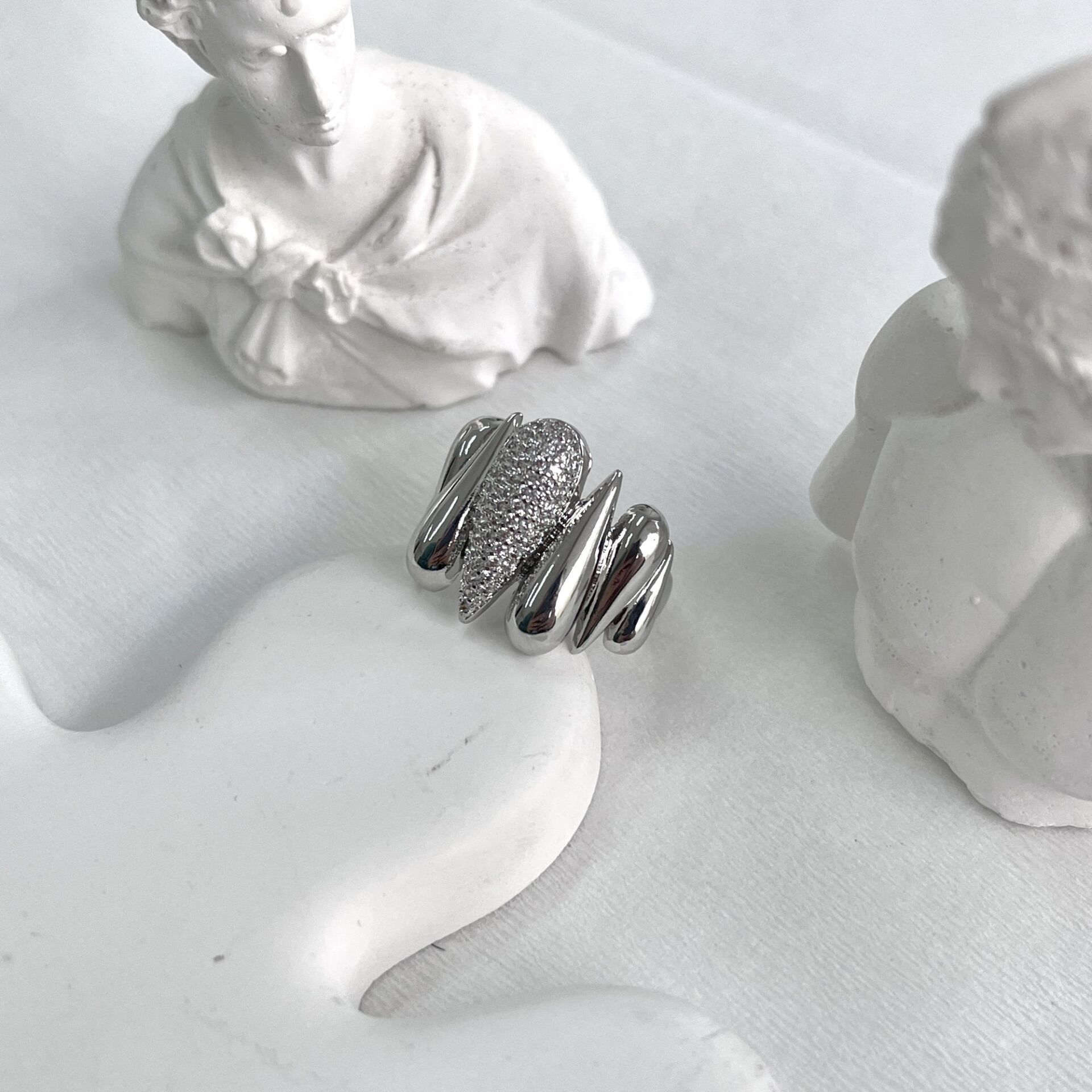 Özel seri kararmaya dayanıklı rodyum kaplama, ayarlanabilir yüzük.