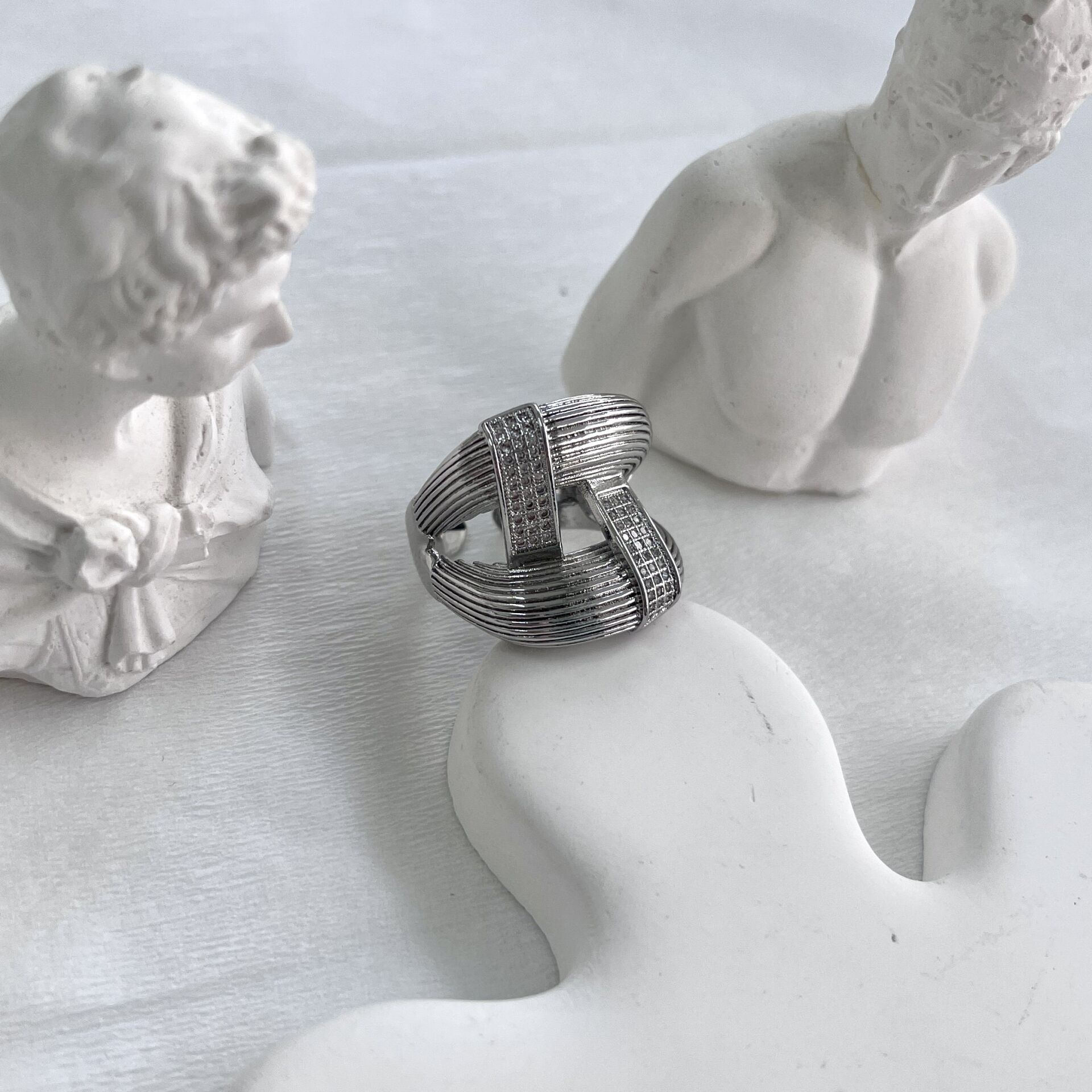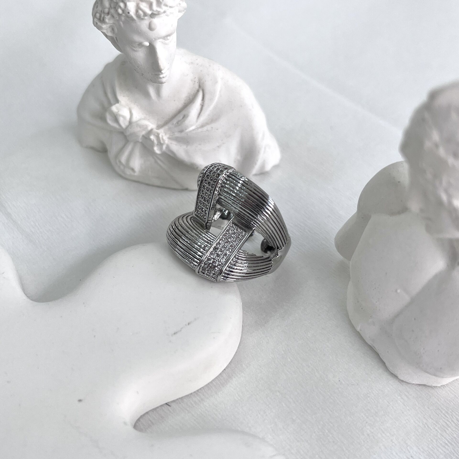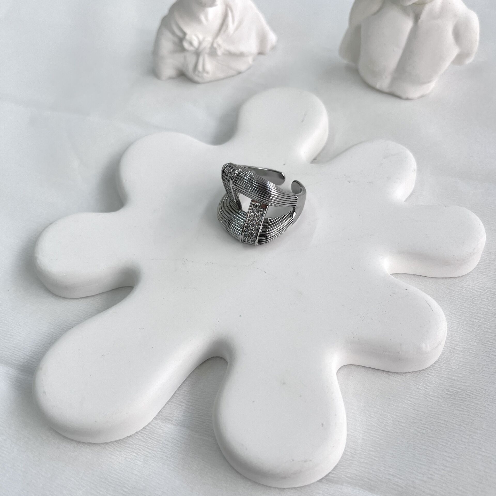 Özel seri kararmaya dayanıklı rodyum kaplama, ayarlanabilir yüzük.