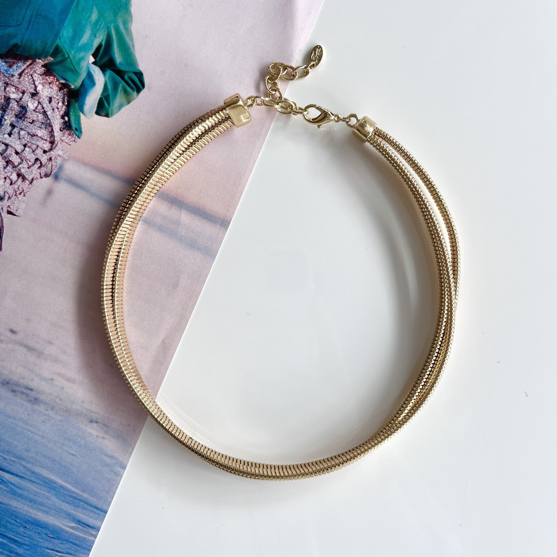 Kararmaya dayanıklı özel seri rodyum kaplama ayarlanabilir choker model.