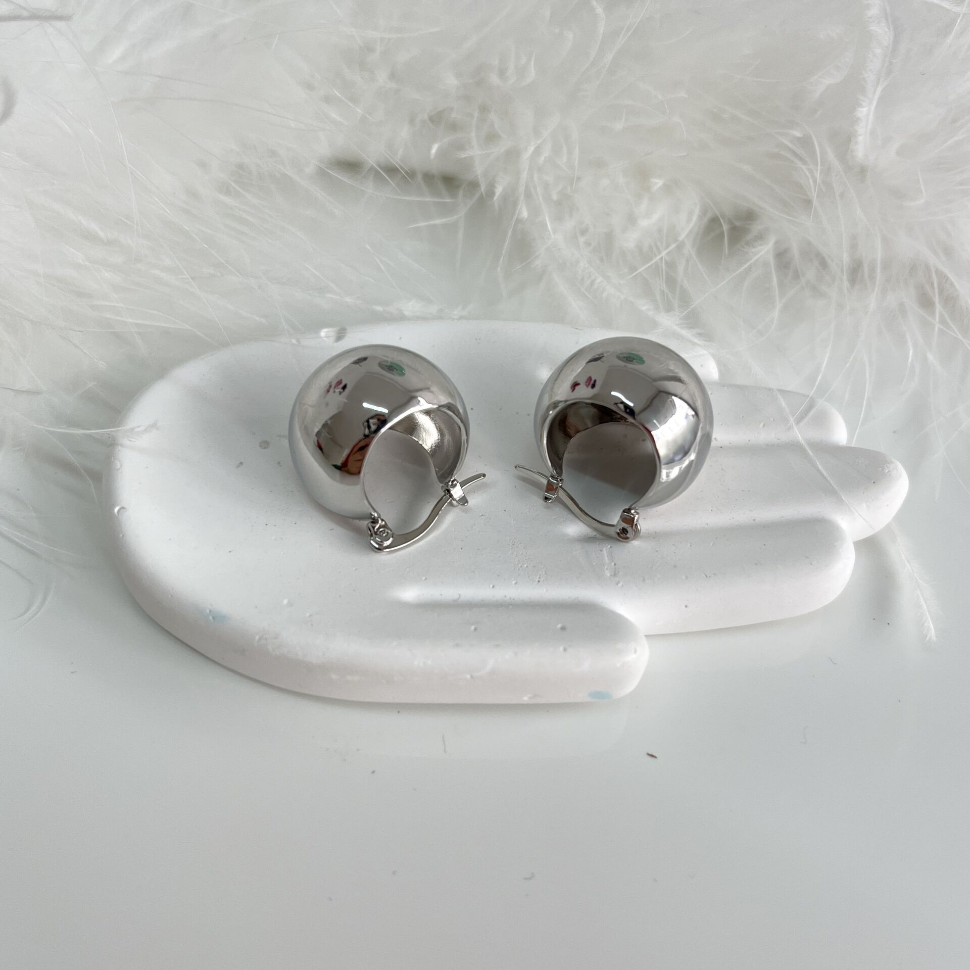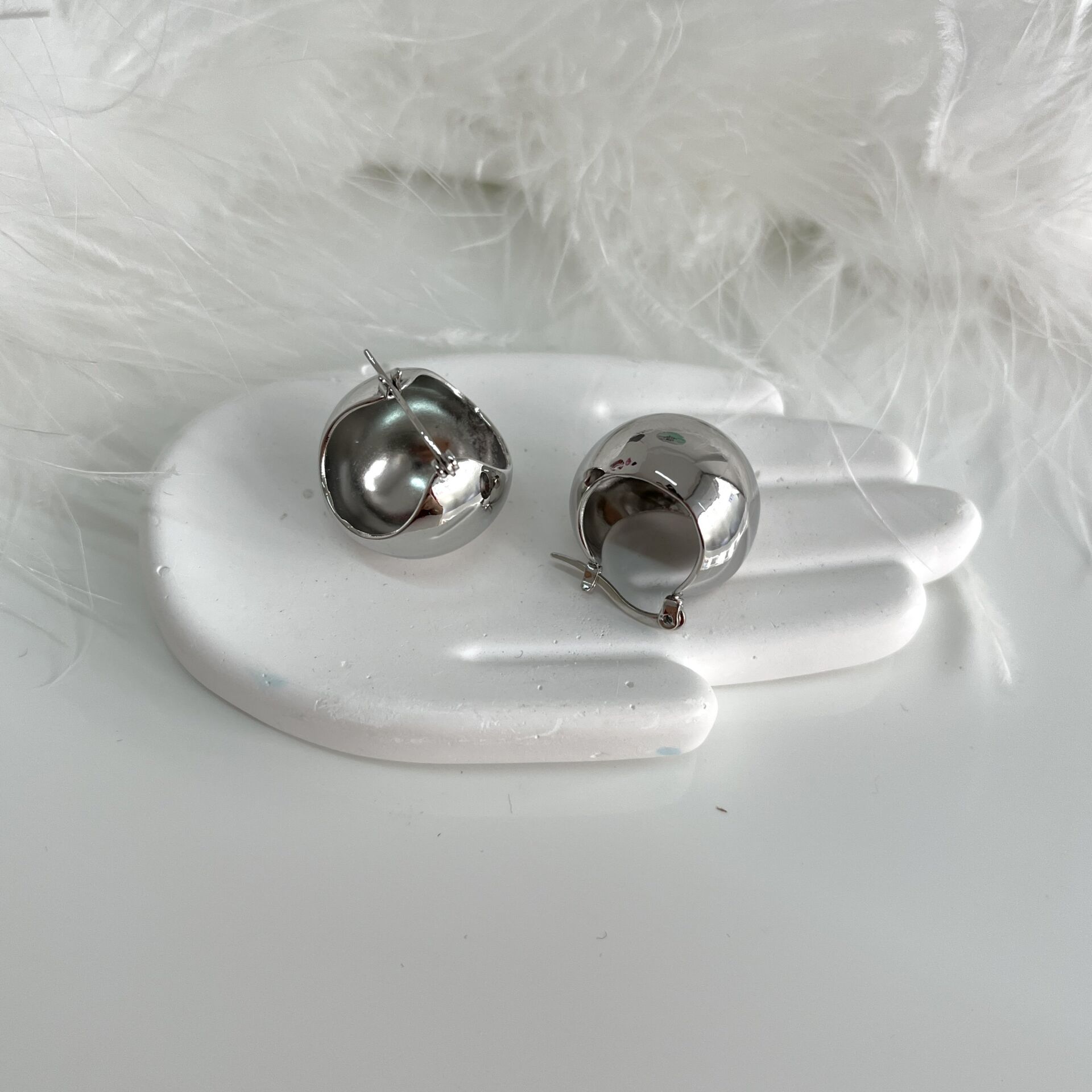 Kararmaya dayanıklı özel seri rodyum kaplama küpe.