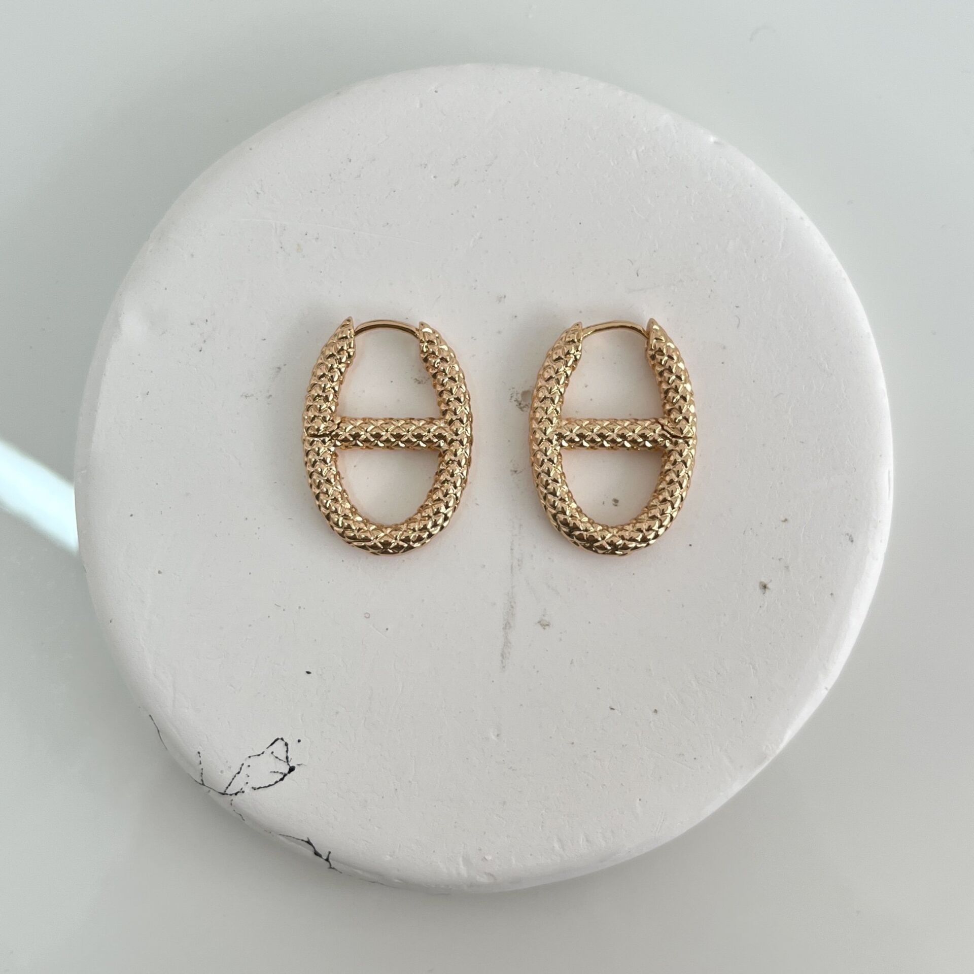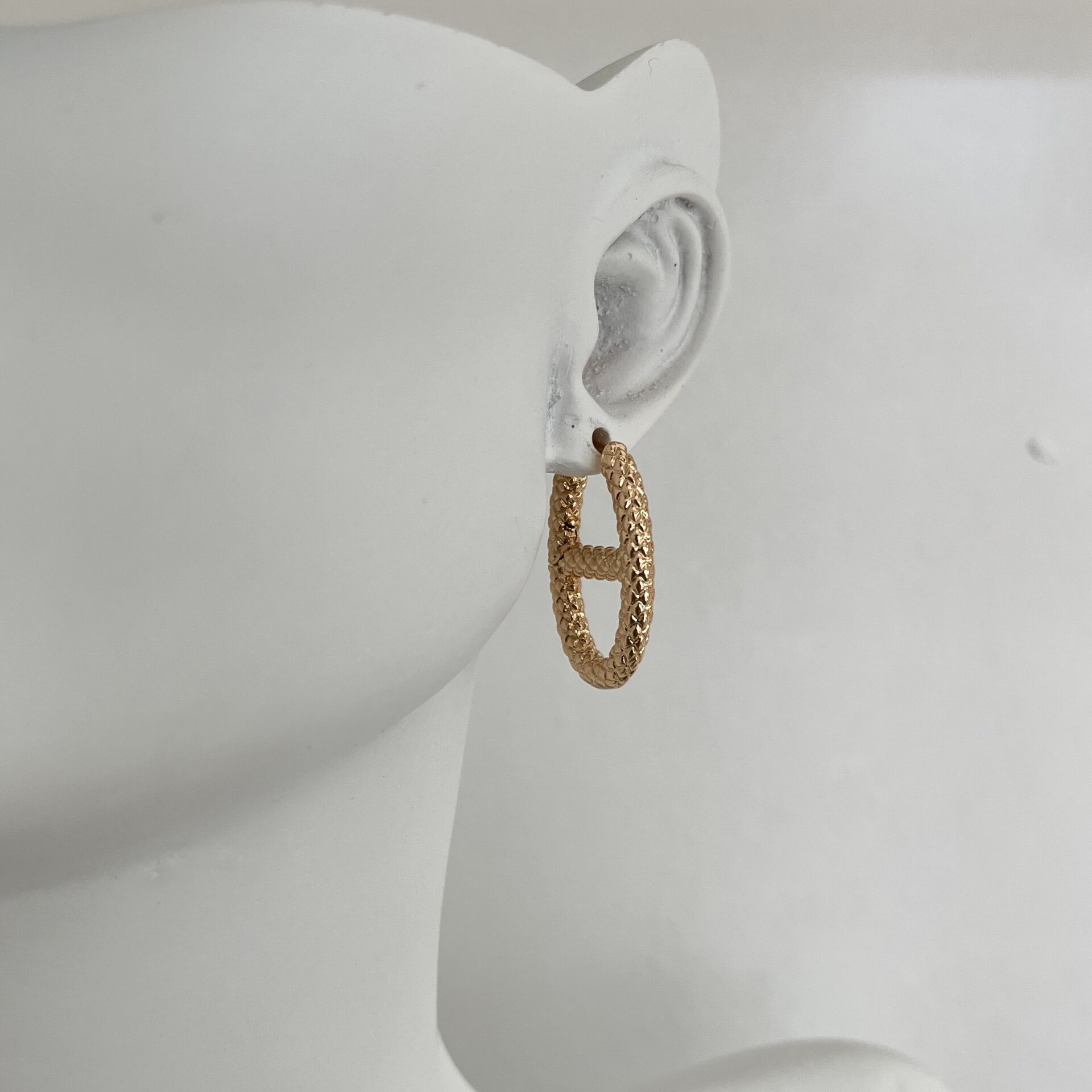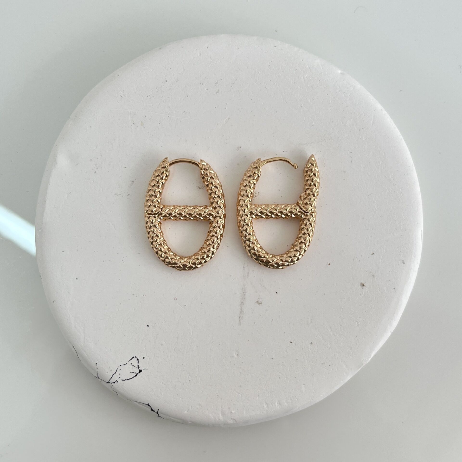 Kararmaya dayanıklı özel seri rodyum kaplama yılan desen baskı küpe.