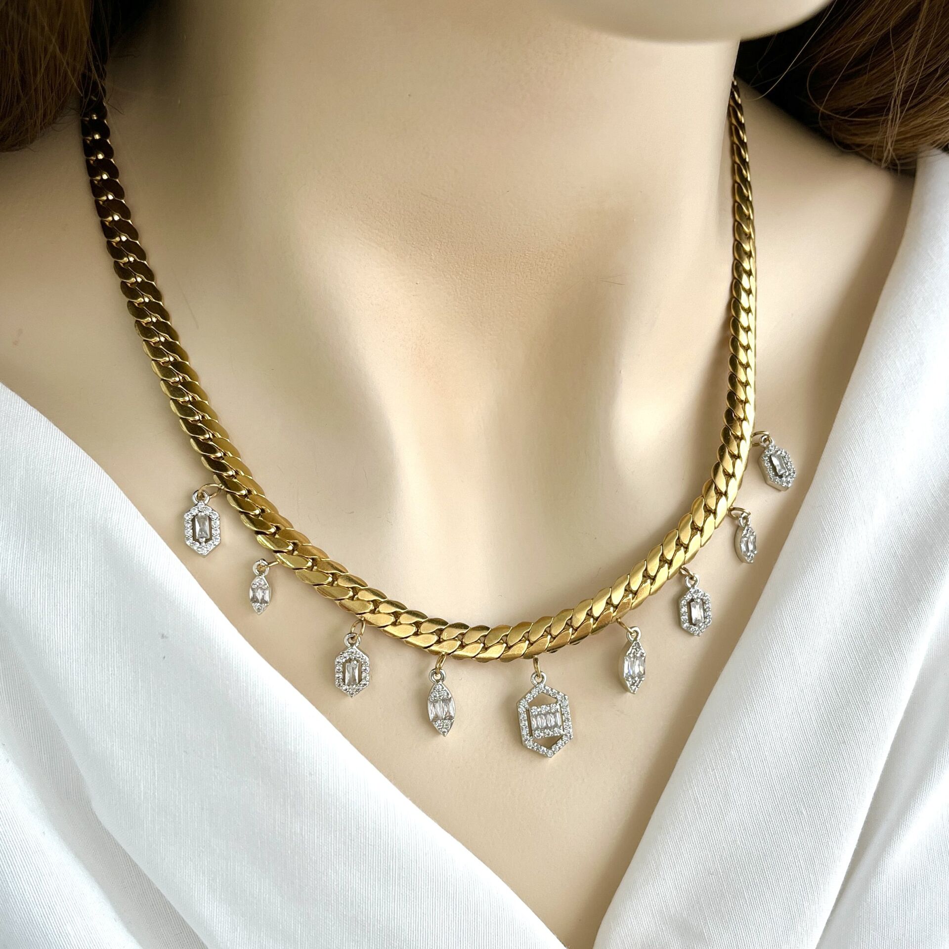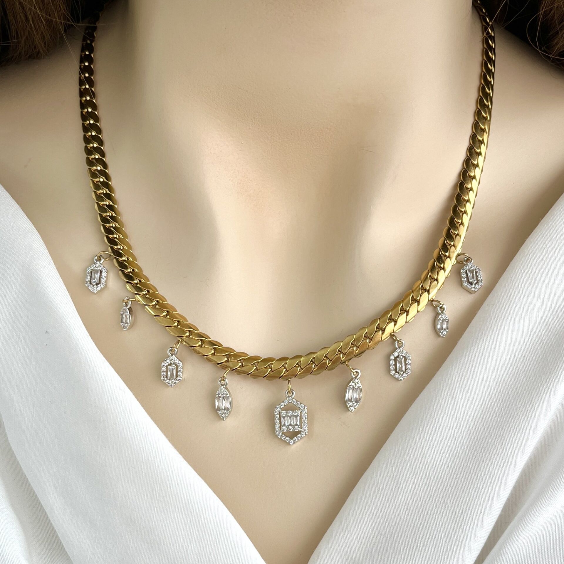 Vip özel seri kararmaya dayanıklı rodyum kaplama kolye.