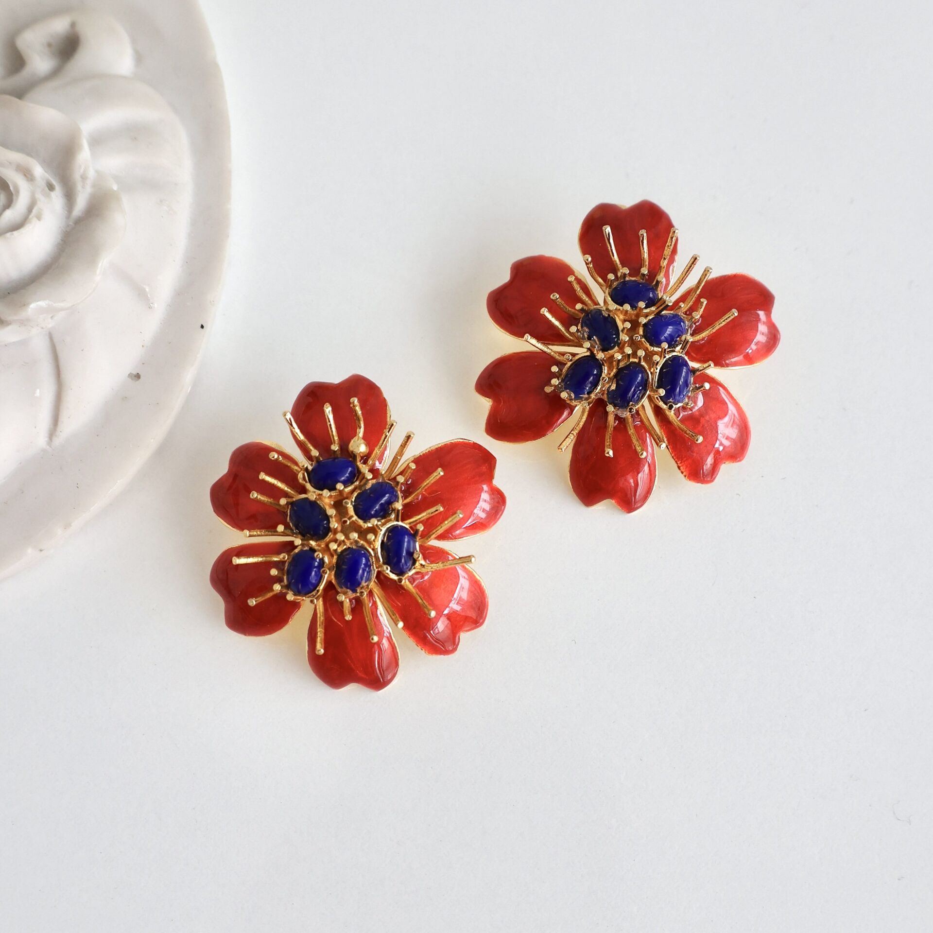 Özel tasarım mine kaplama üç boyutlu küpe.