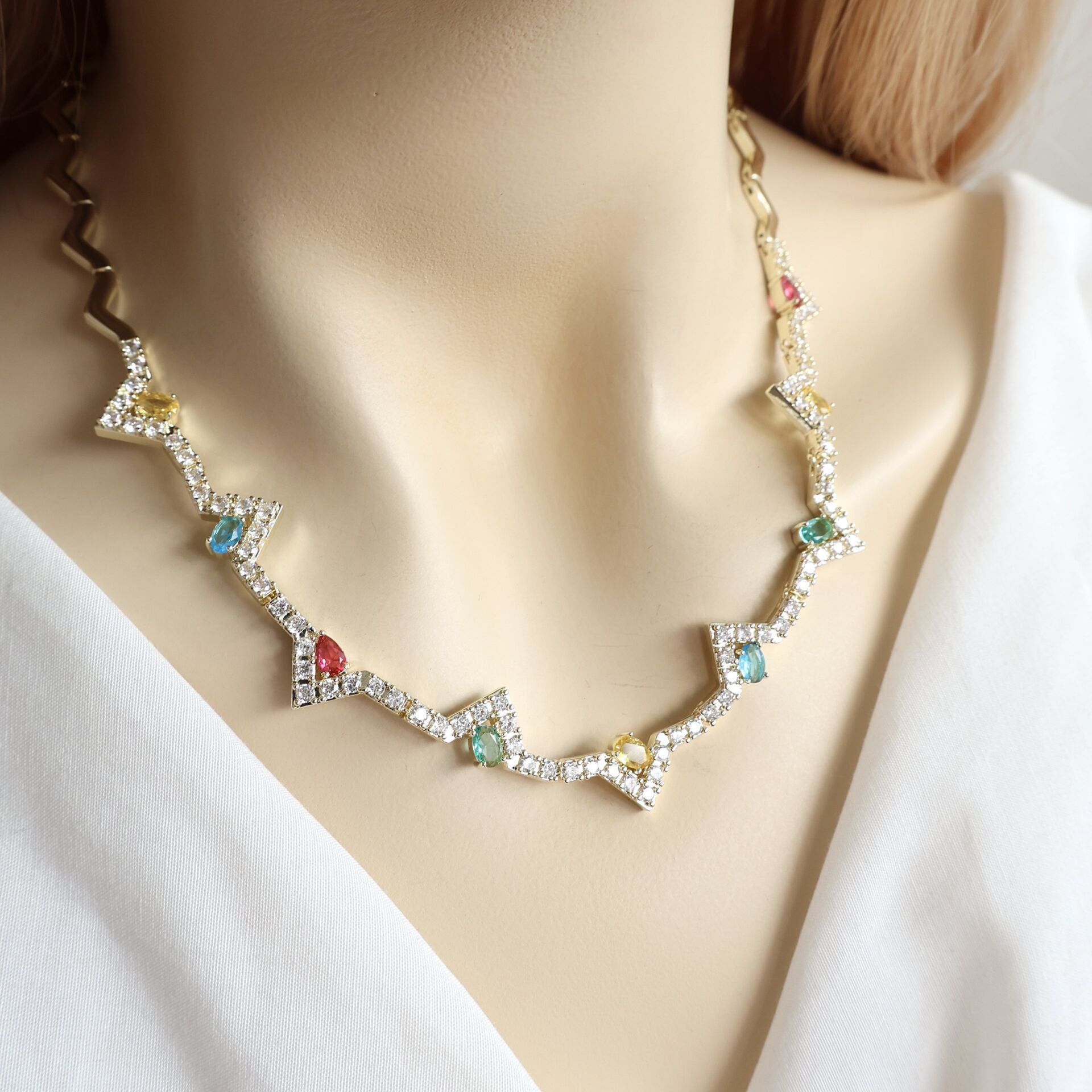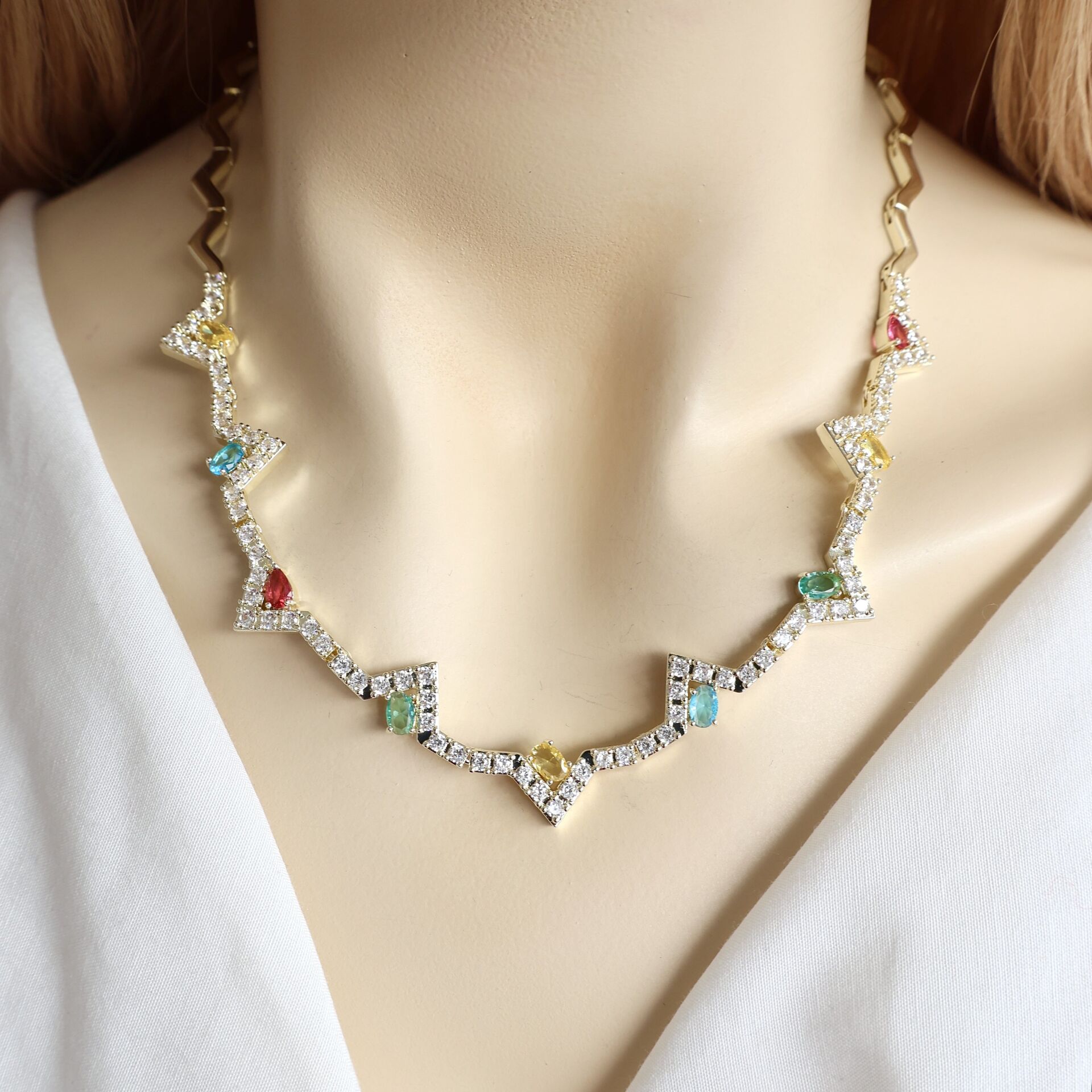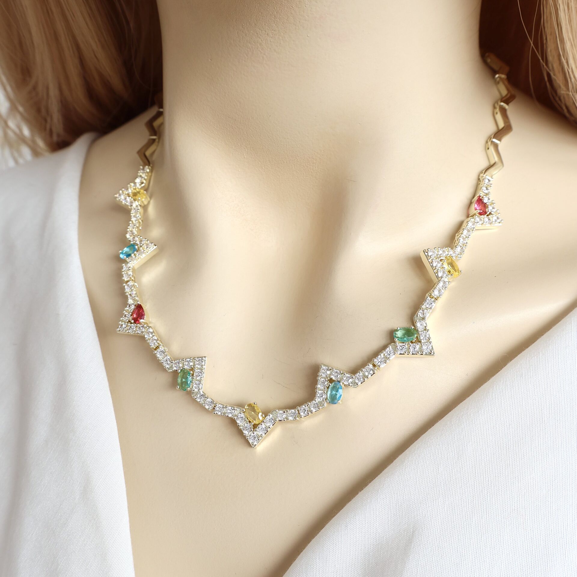 1. sınıf pirinç malzeme kaplama kolye.Zirkon taşlar kullanılmıştır.