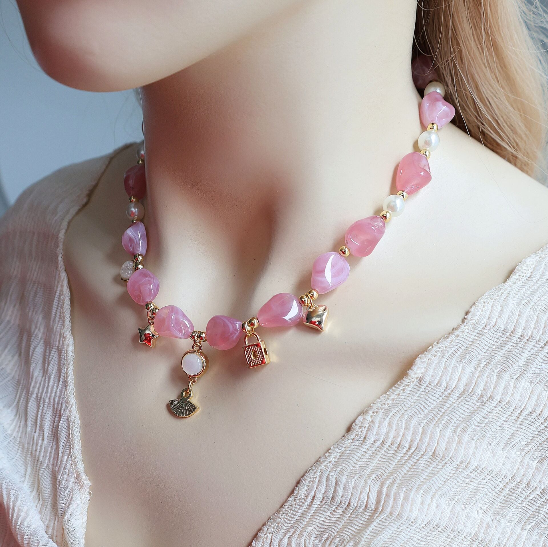 Pembe Akrilik Kolye