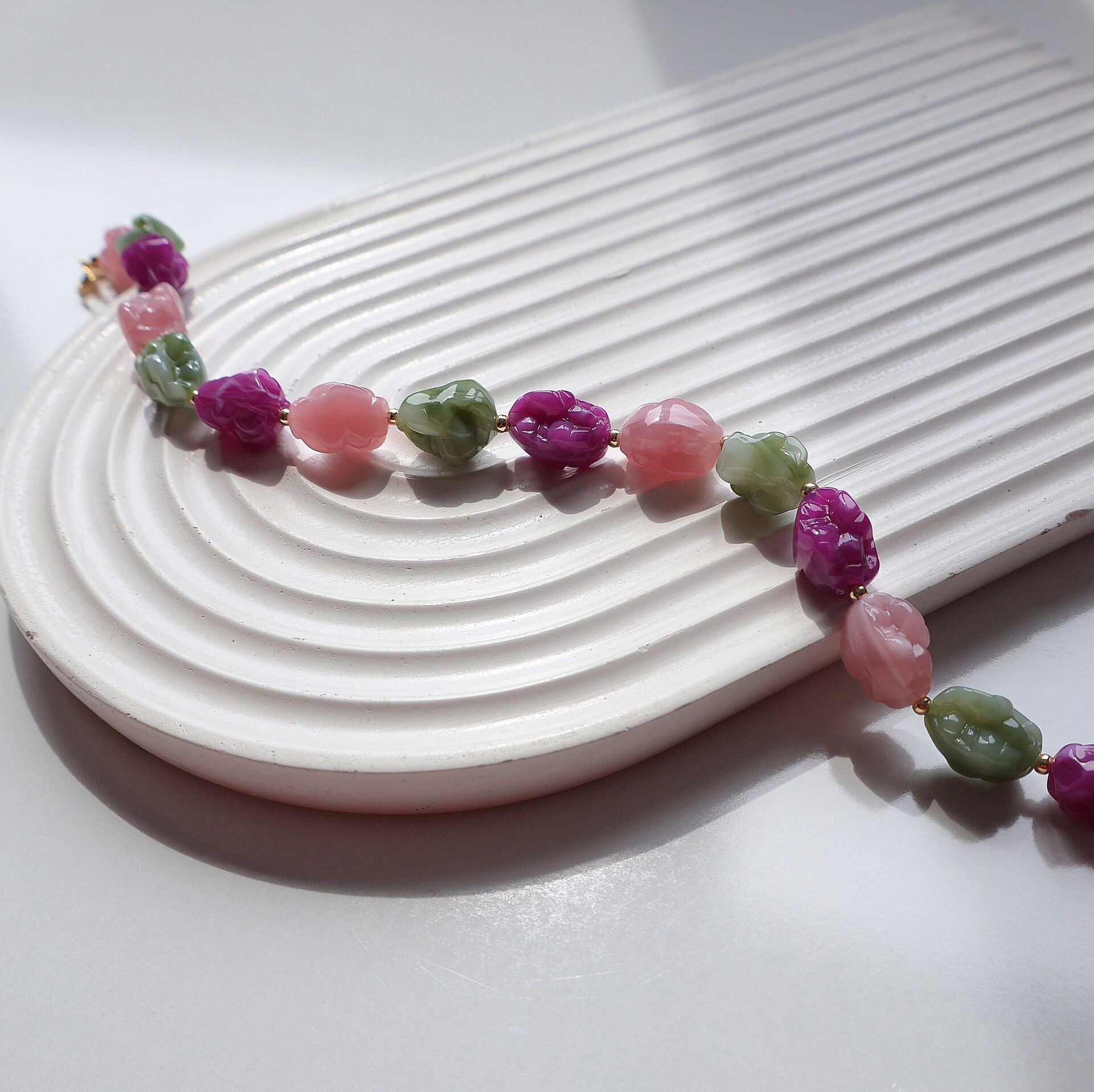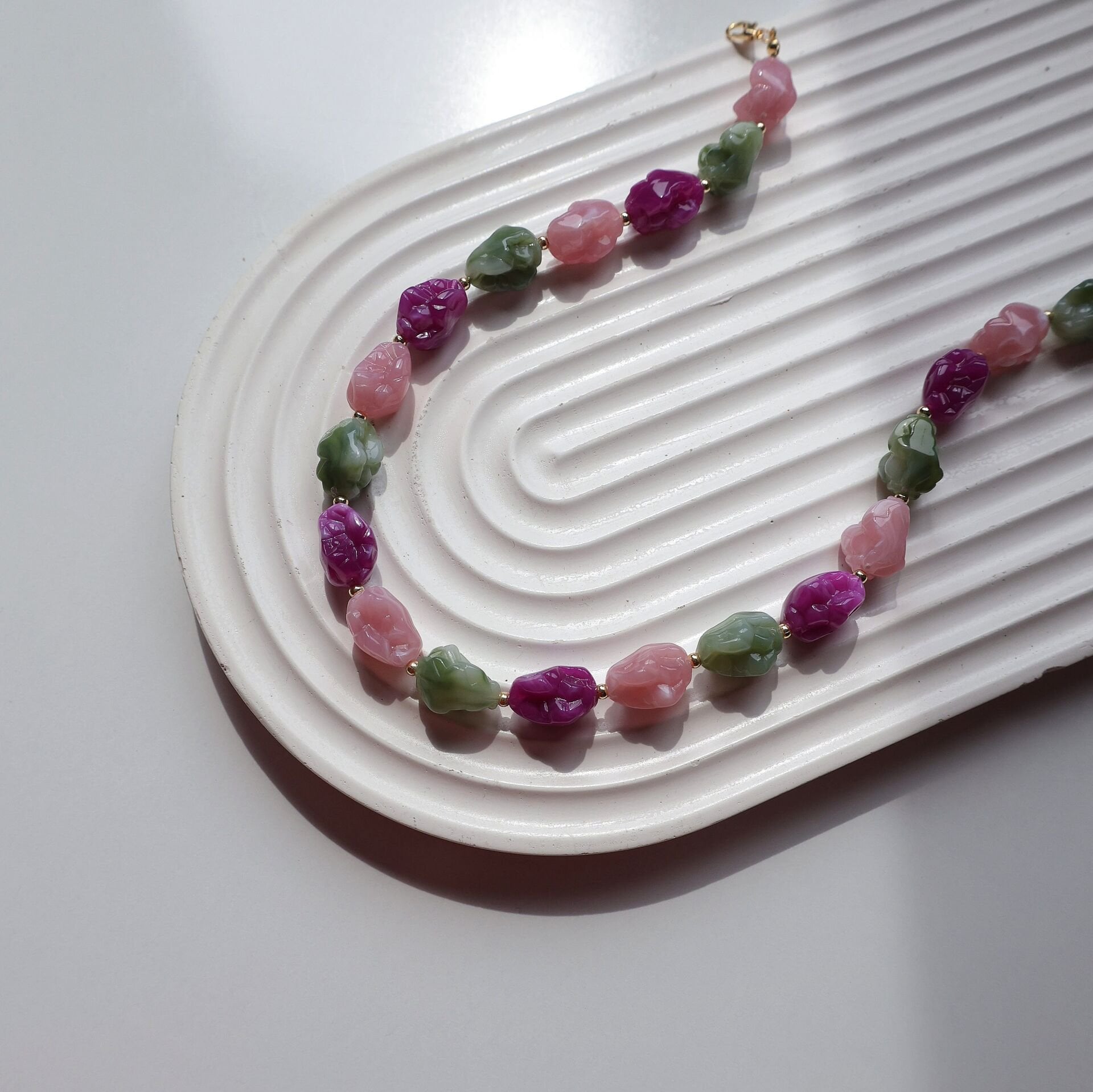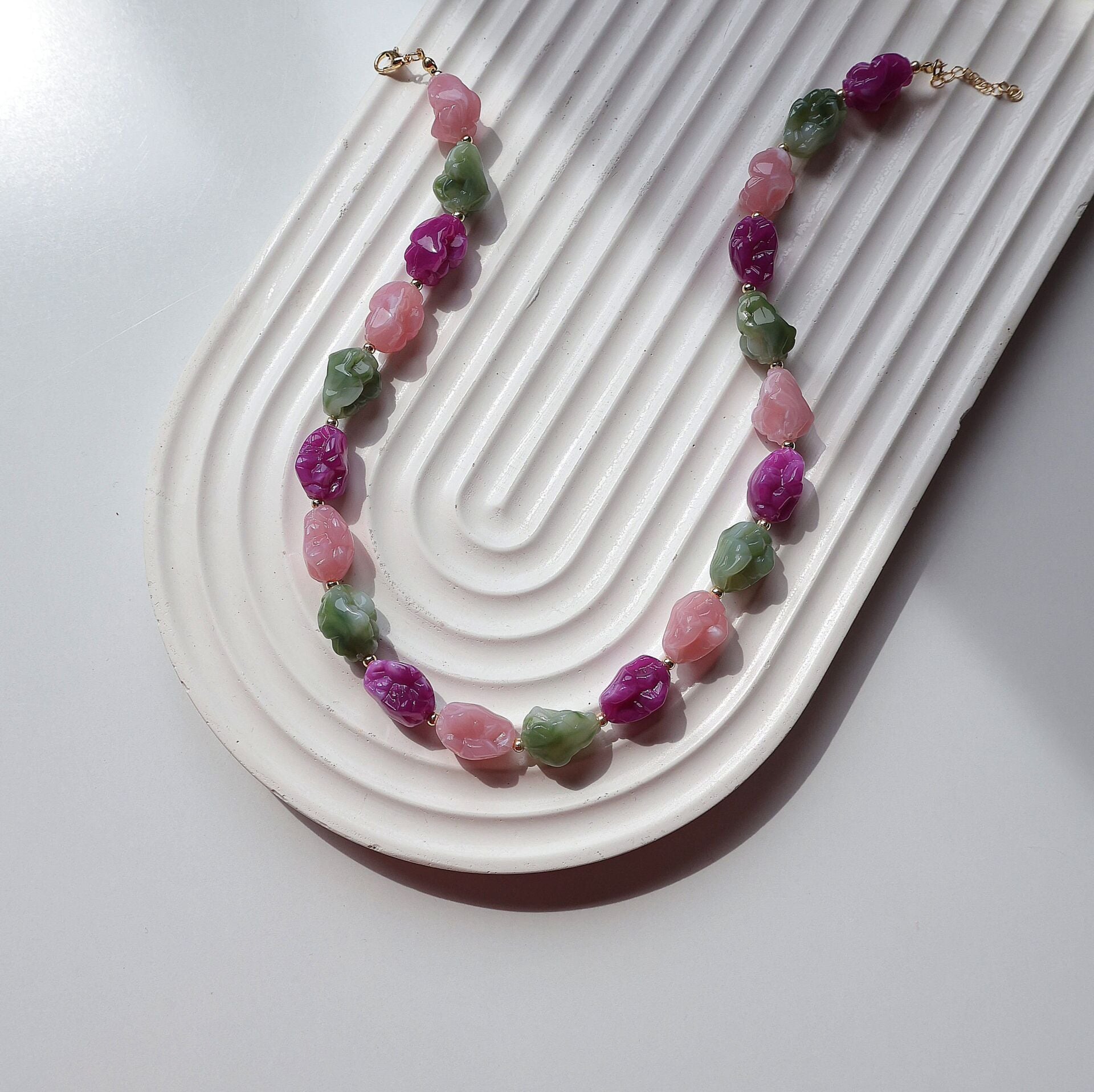 Akrilik boncuk ve pirinç malzemeden imal edilmiştir.