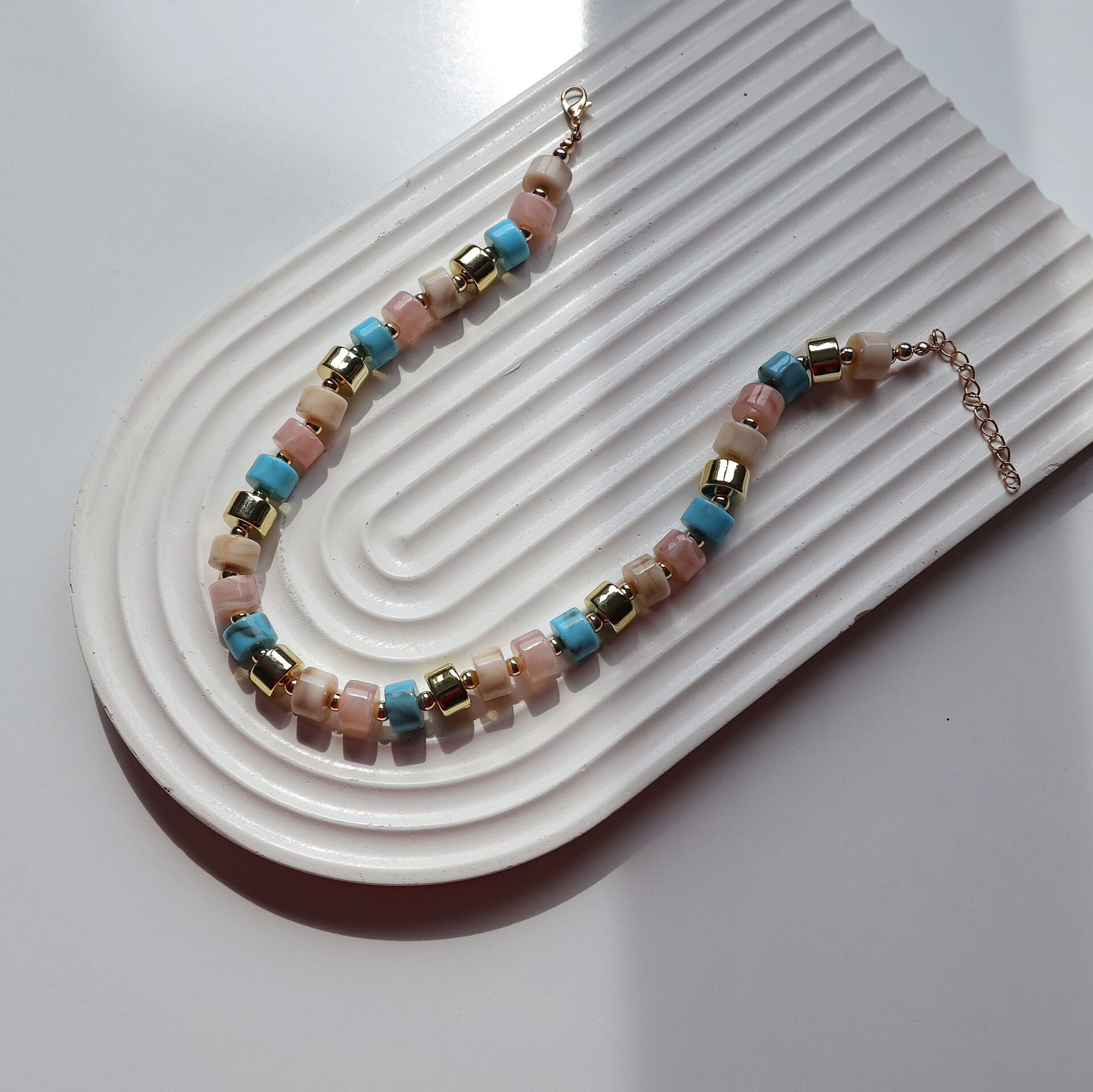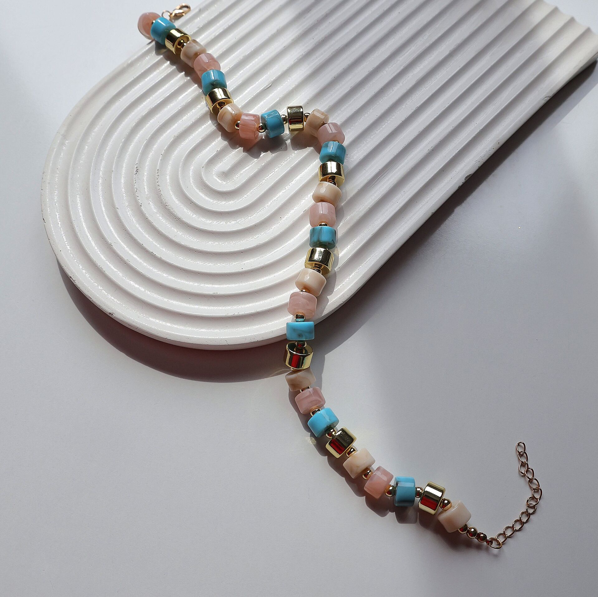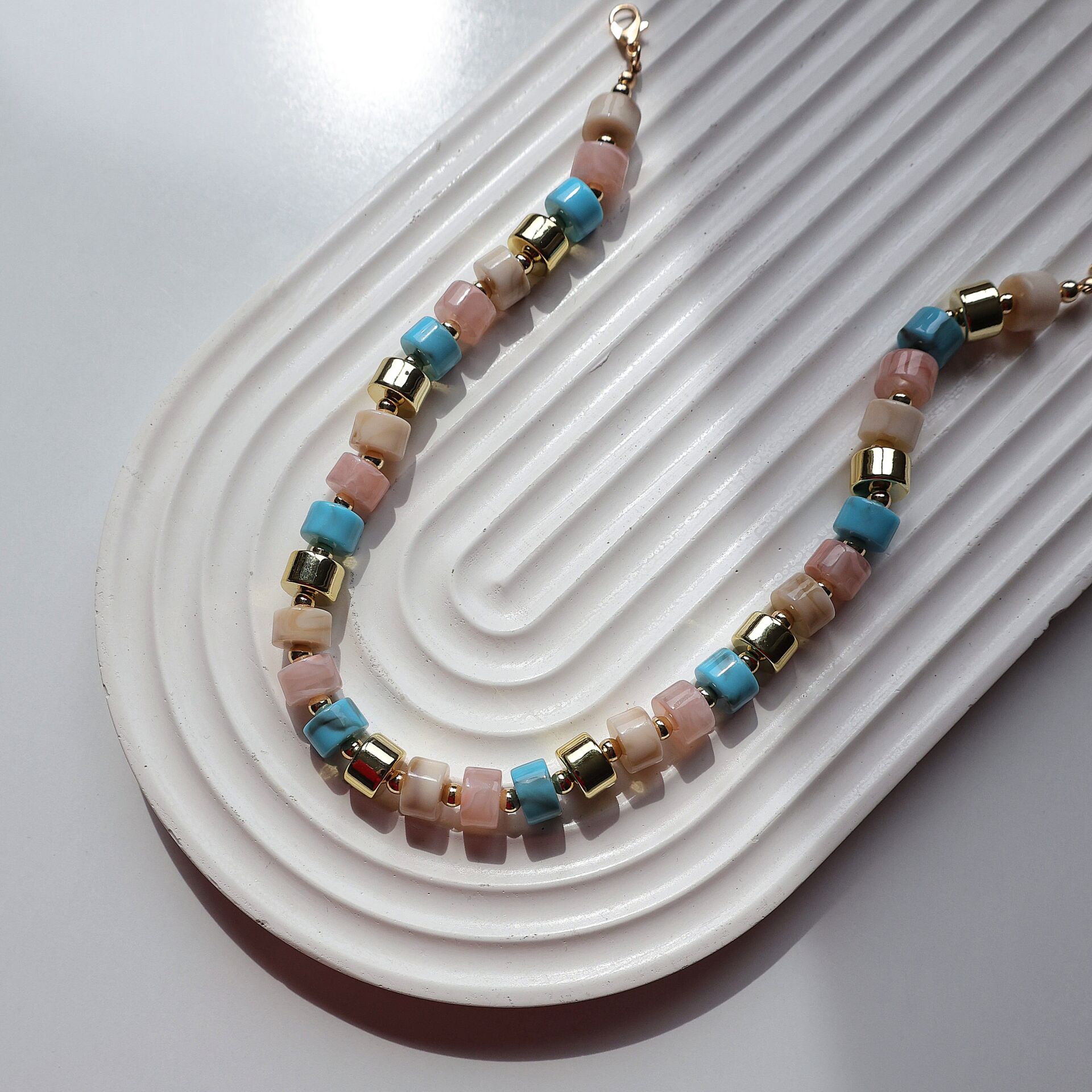 Akrilik kemik boncuk ve pirinç malzemeden imal edilmiştir.