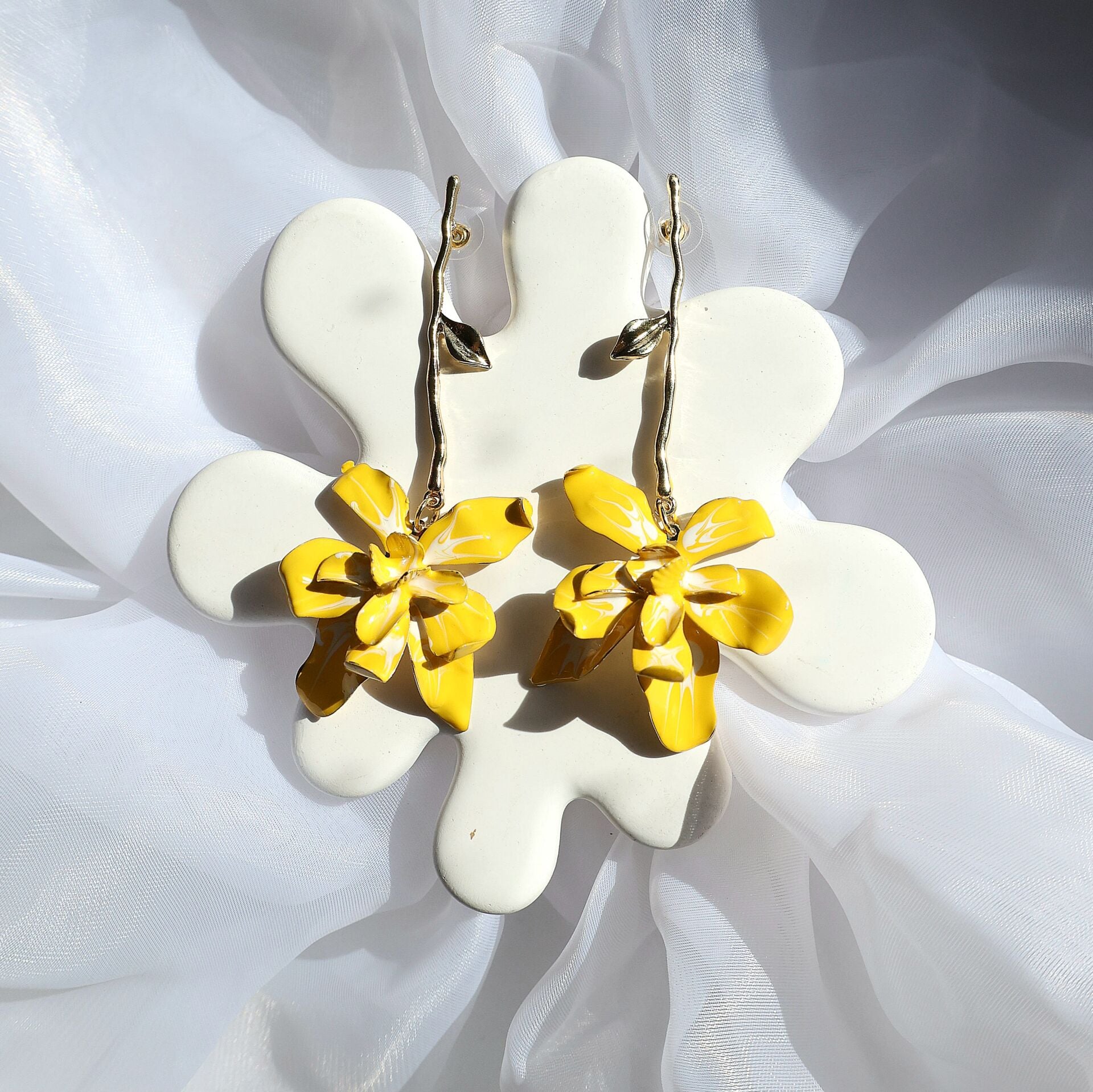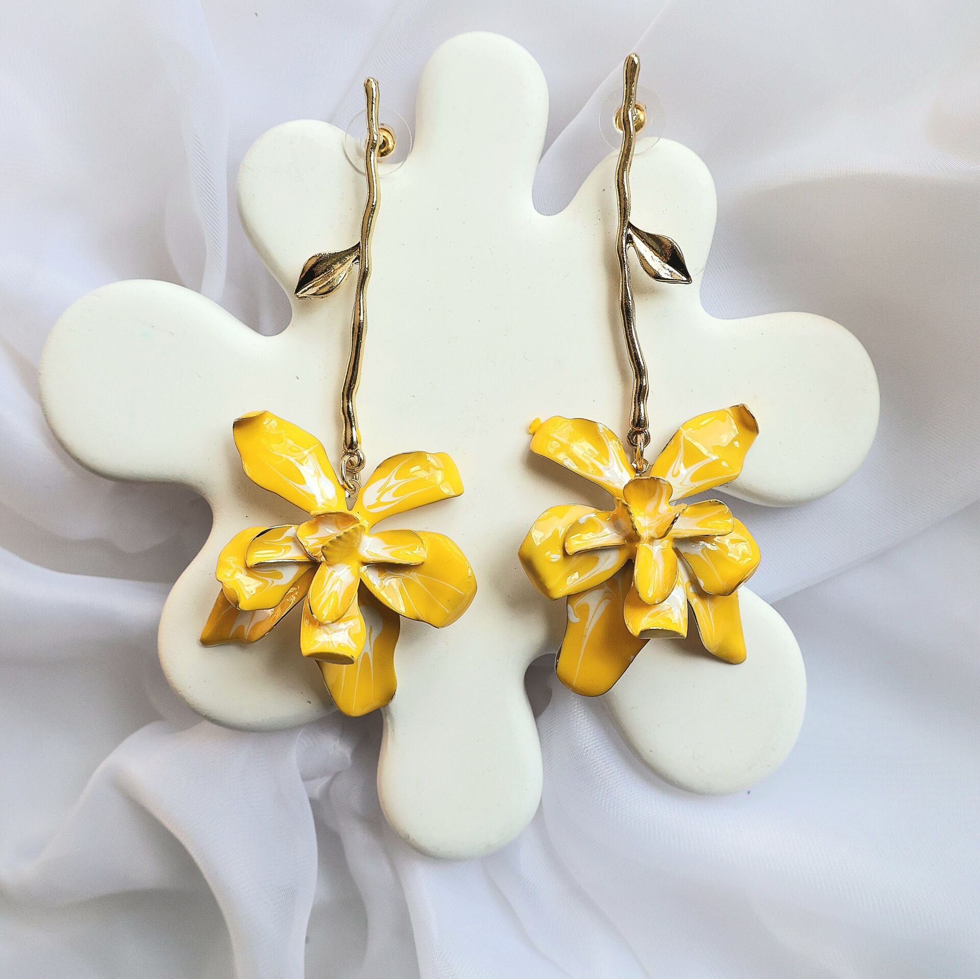 Sarı Çiçek Sallantı Küpe