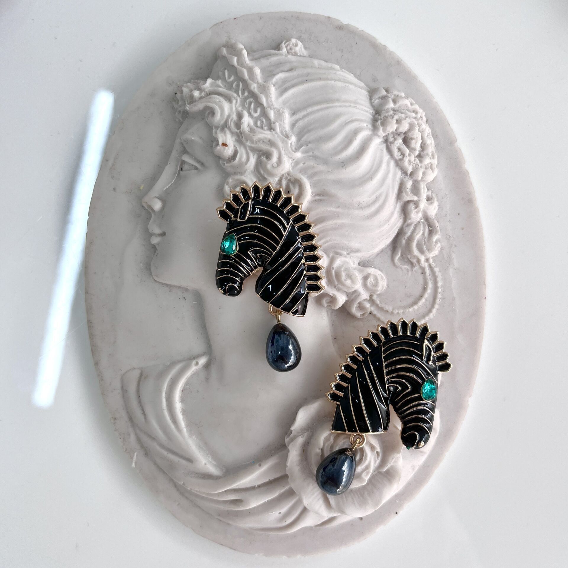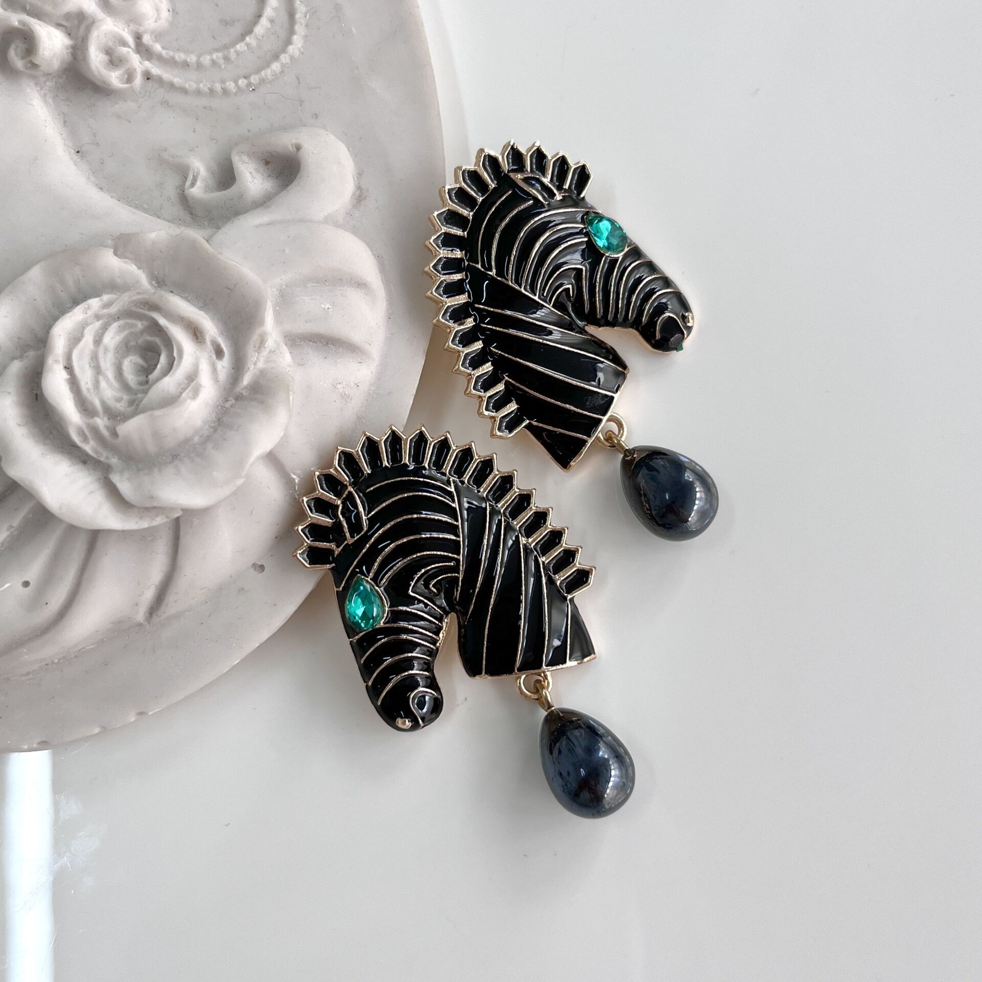 Siyah Zebra Küpe