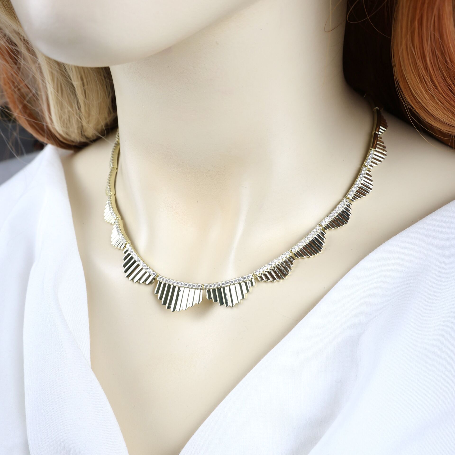 Pirinç malzeme kaplama zirkon taş kolye.