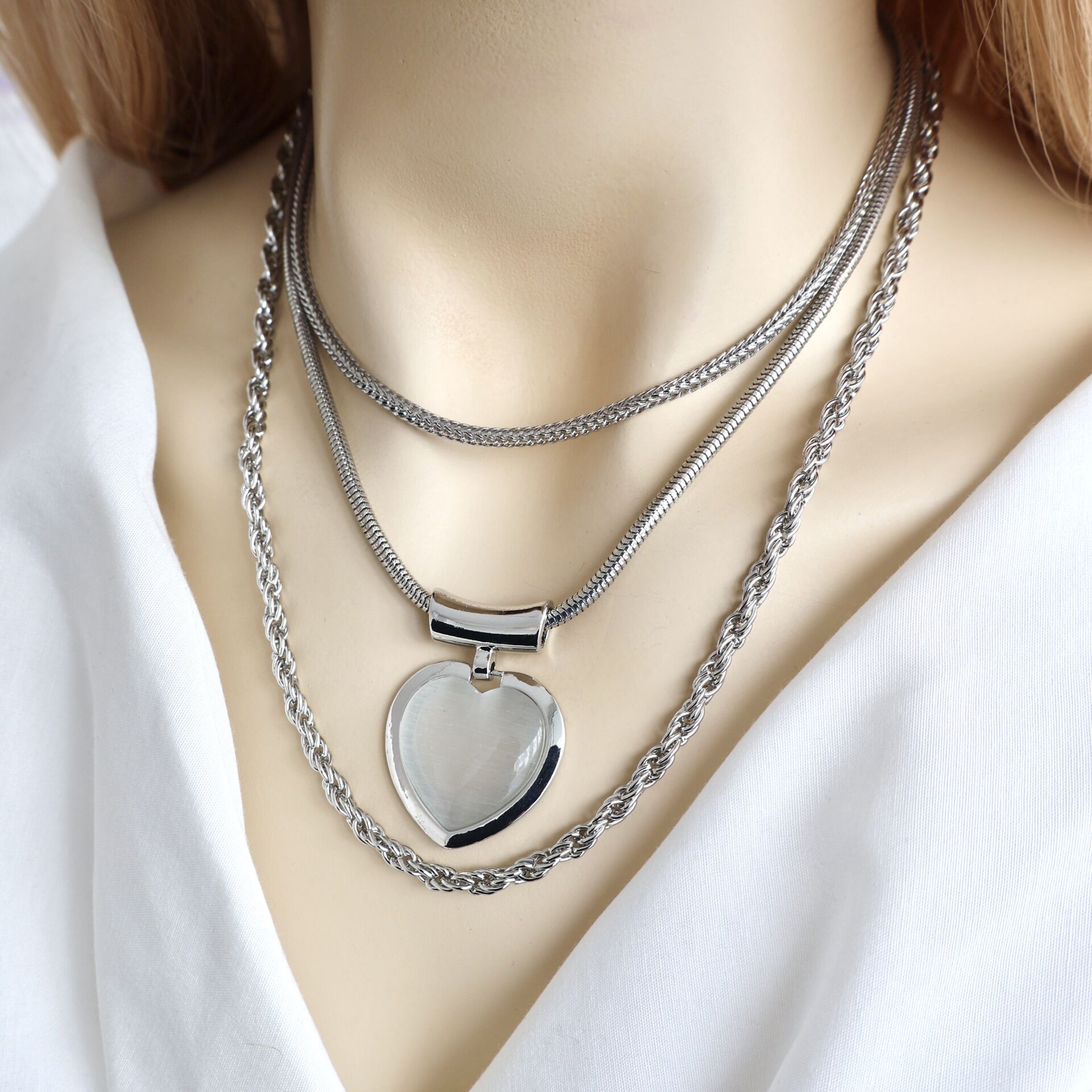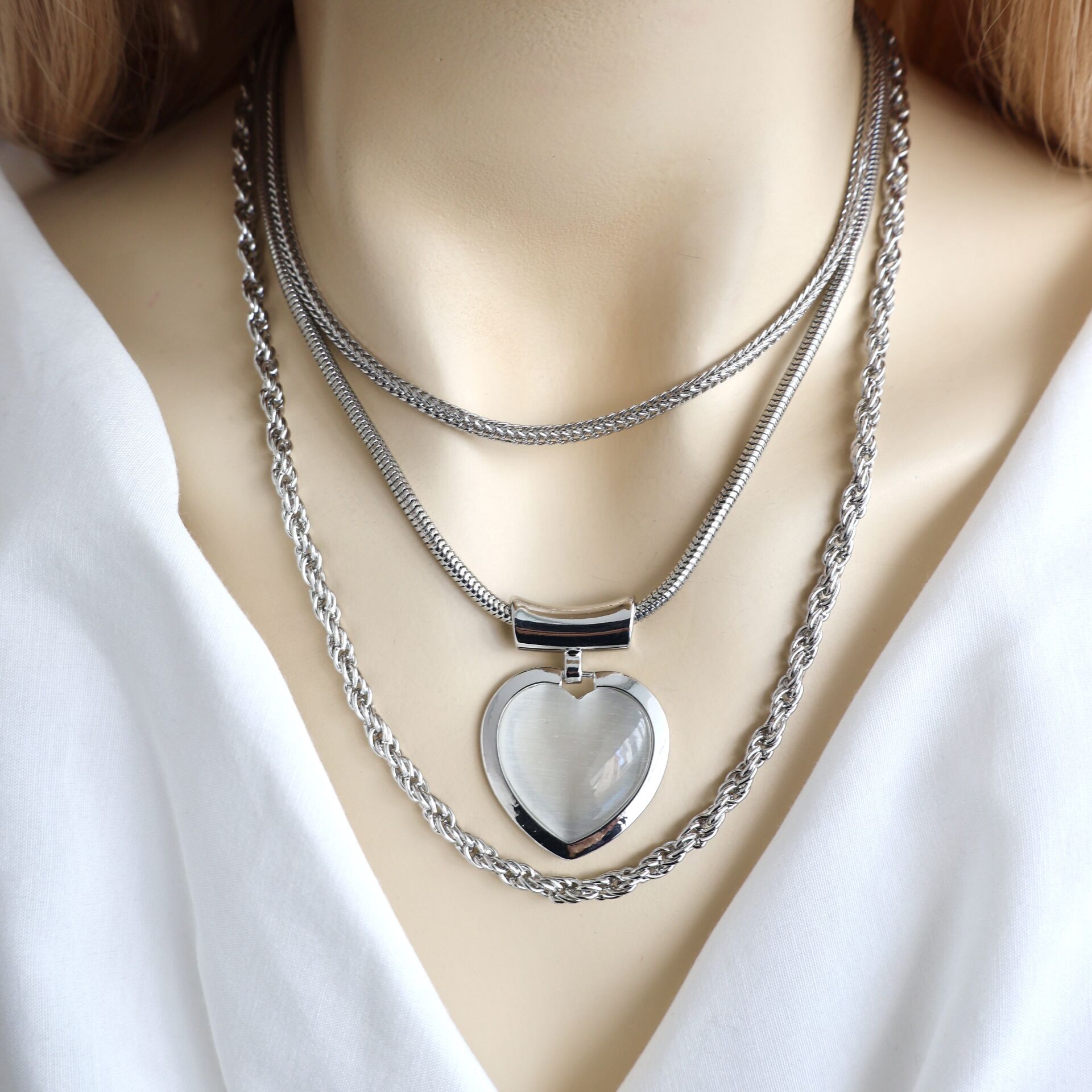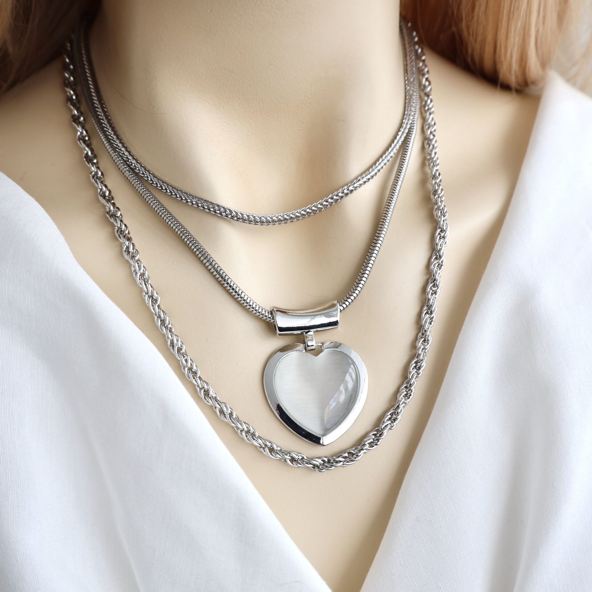 VIP Kedi Gözü Kalp Üçlü Kolye