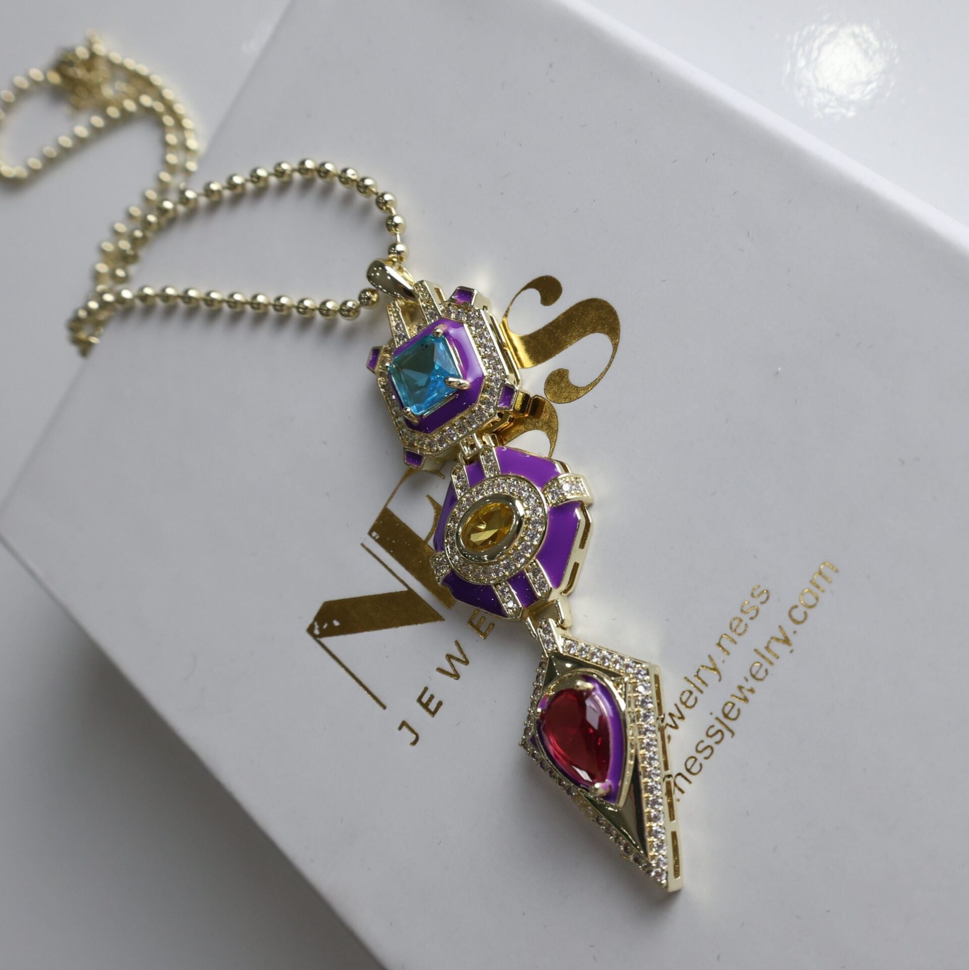 Vip Taşlı Mor Kolye