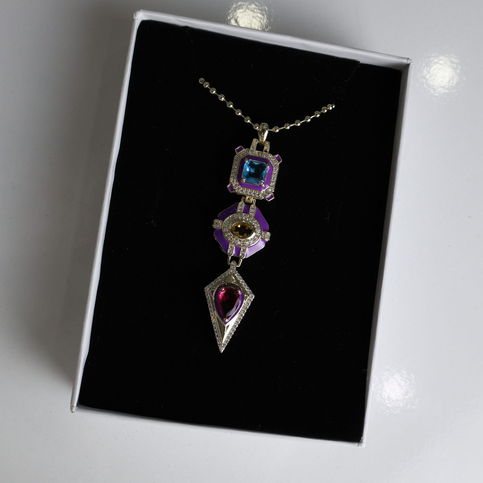 Özel seri kararmaya dayanıklı rodyum kaplama zirkon taş işlemeli kolye.
