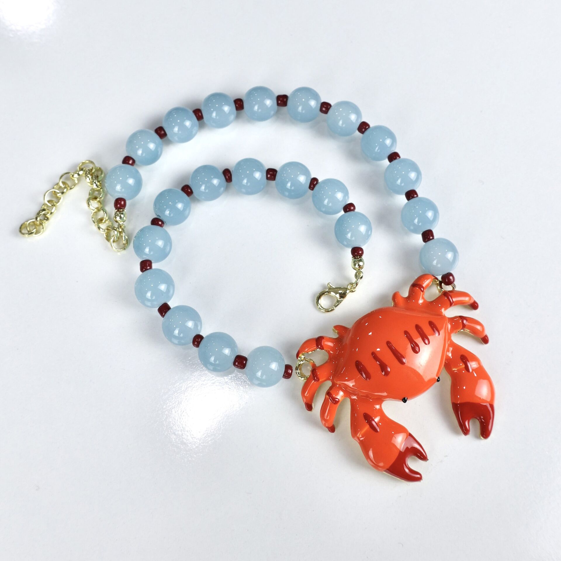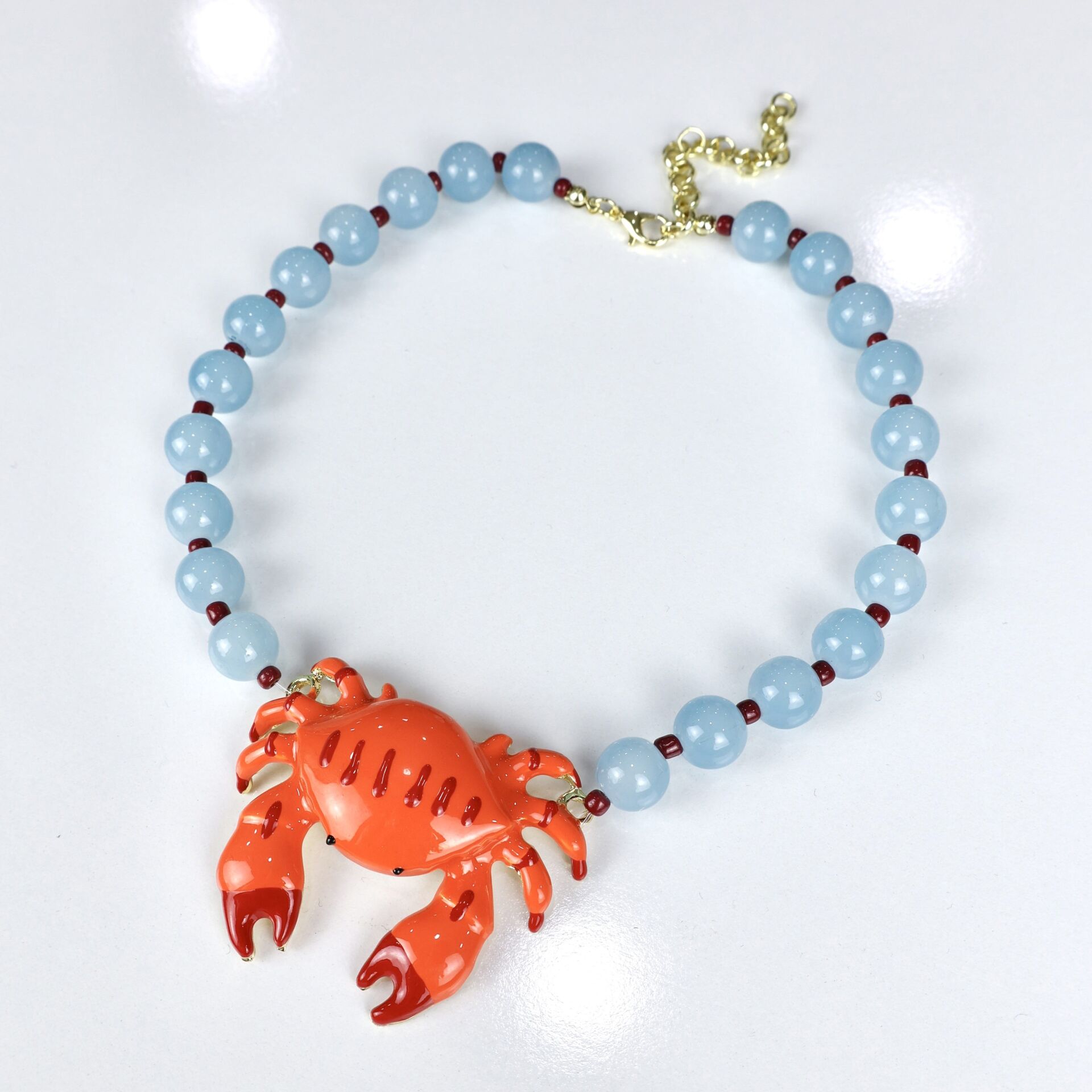 Yengeç kısmı pirinç malzeme kaplama cam boncuk kolye.