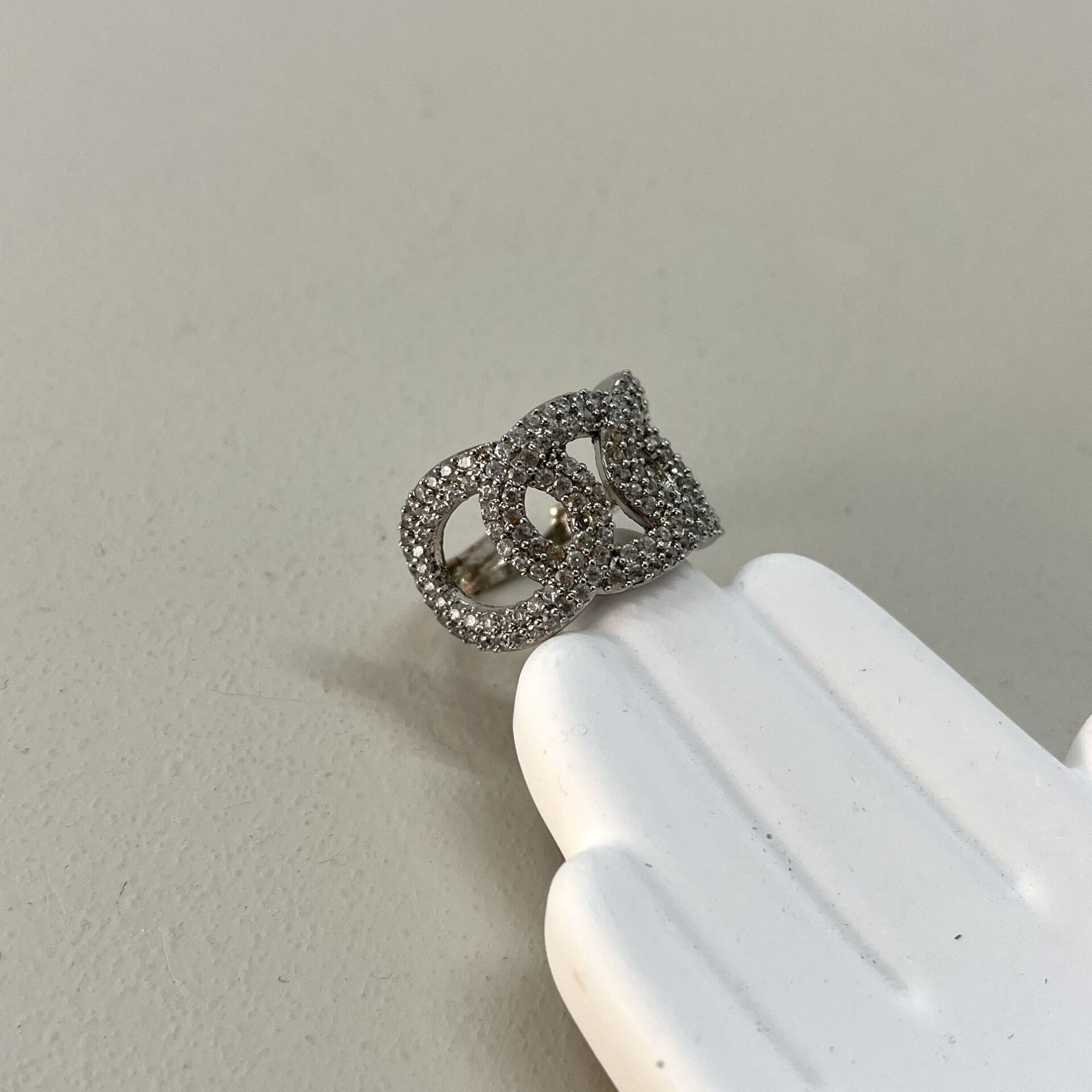 Rodyum kaplama, zirkon taşlı ayarlanabilir yüzük.