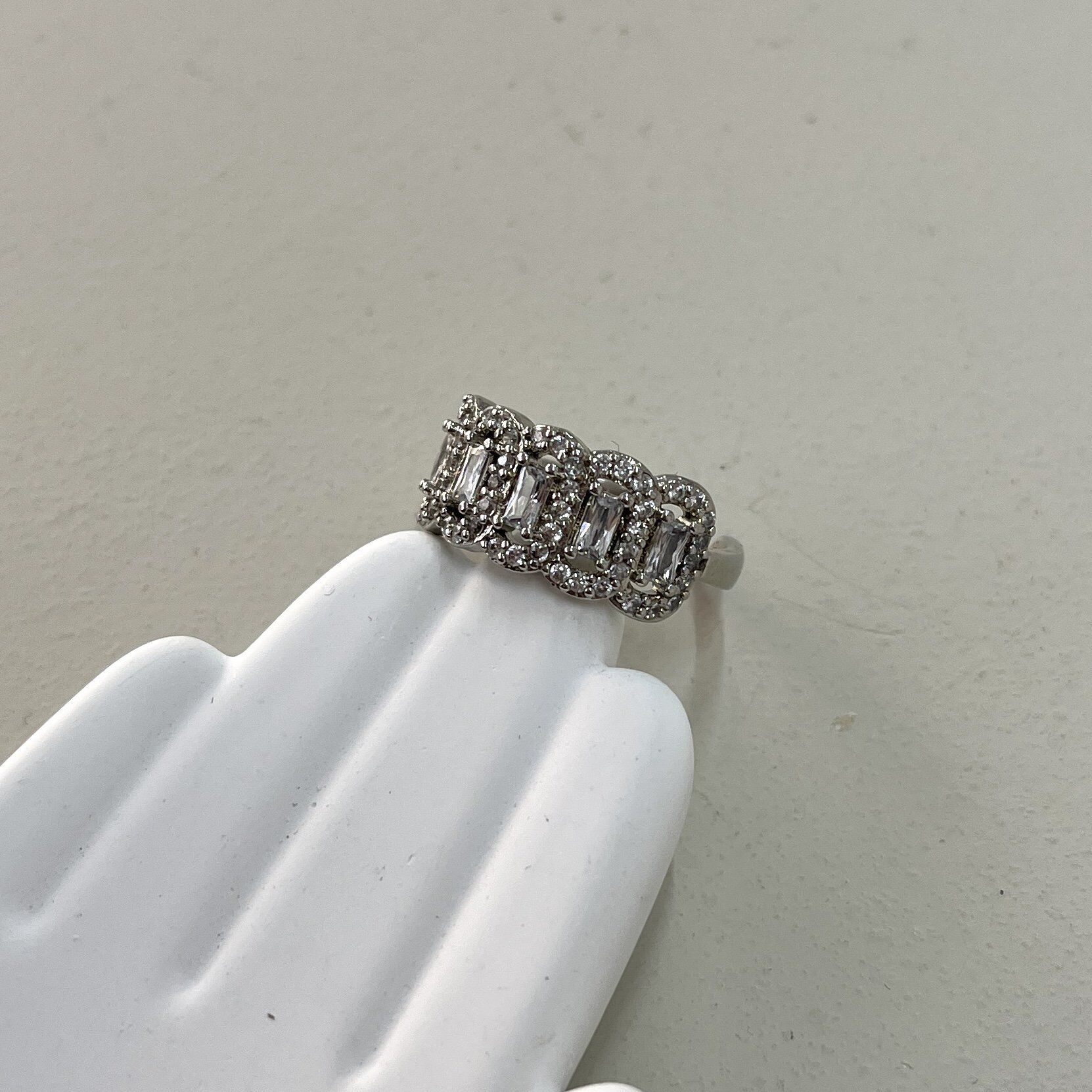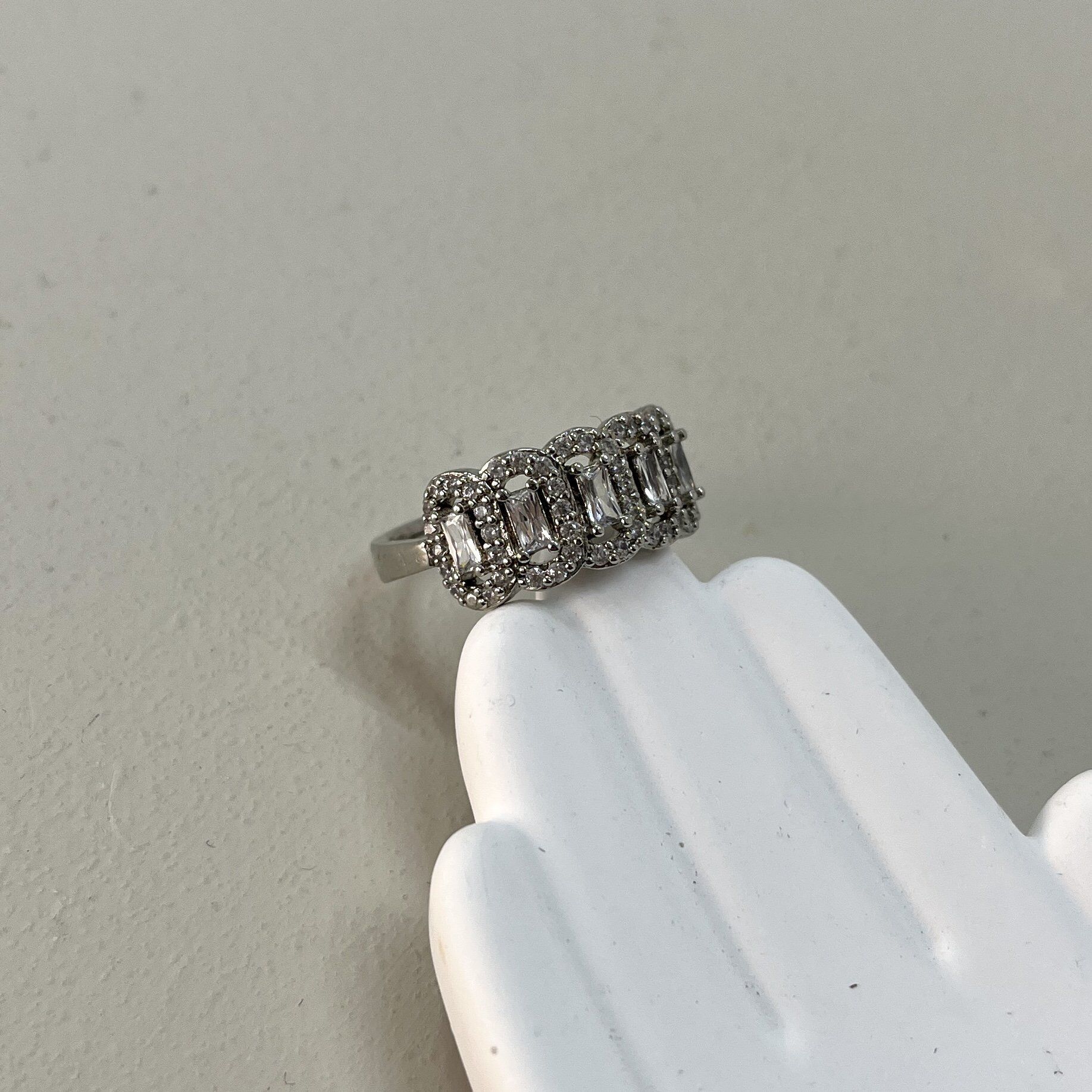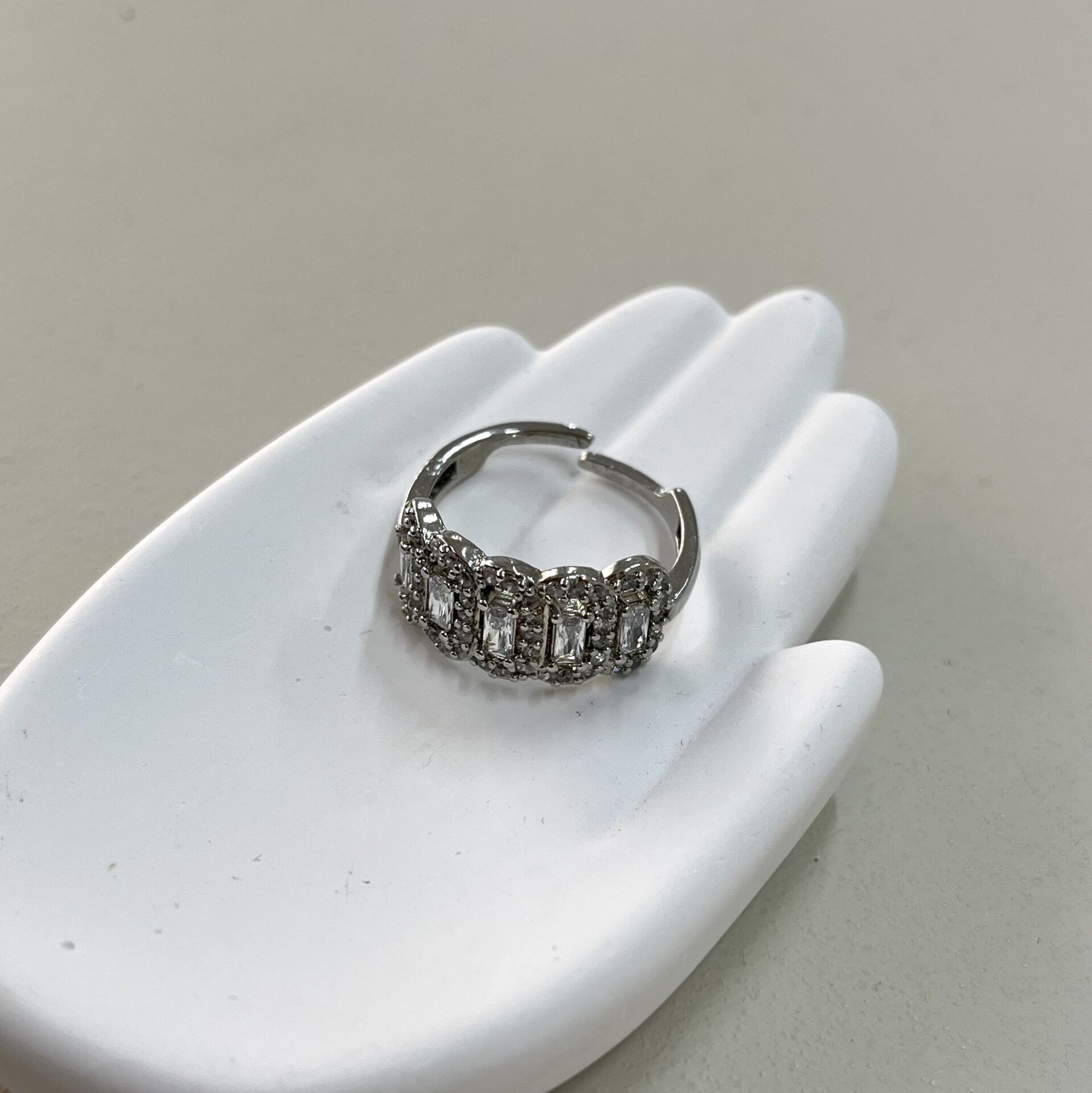 Rodyum kaplama, zirkon taşlı ayarlanabilir yüzük.