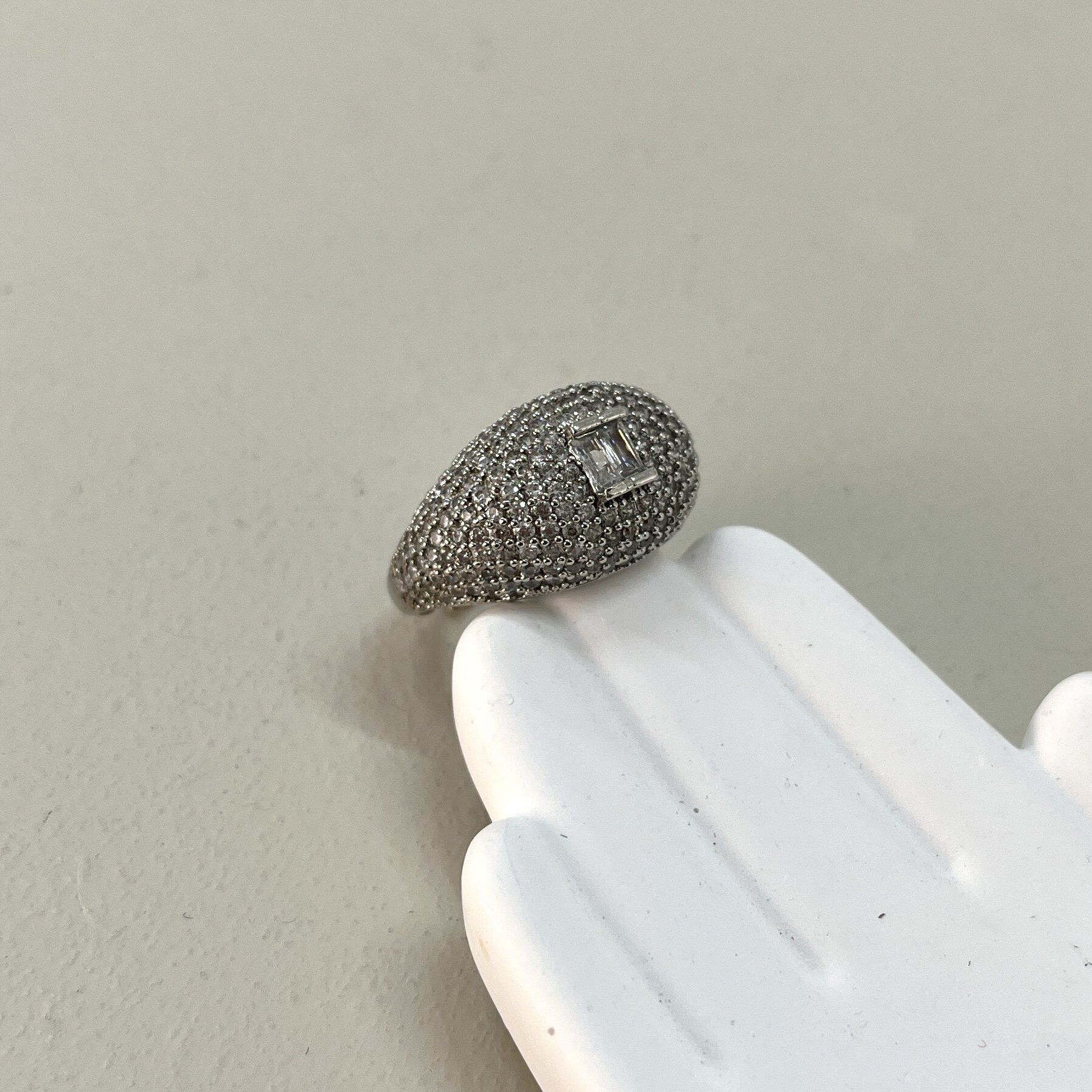 Rodyum kaplama, zirkon taşlı ayarlanabilir yüzük.